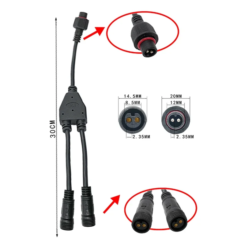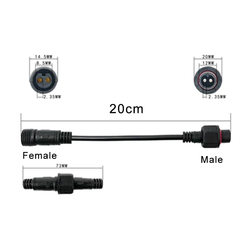 Discover this versatile and durable waterproof connector cable by Widsay, designed for outdoor solar lighting and DC power extensions. Its sleek black matte finish provides a modern aesthetic while ensuring resistance against weather and environmental elements. The connectors feature rugged cylindrical designs with ribbed or threaded surfaces, guaranteeing a secure and reliable connection. Available in a variety of configurations such as male-to-female, female-to-female, and different pin arrangements, it offers great flexibility for multiple wiring setups. Constructed to withstand outdoor conditions, this product emphasizes safety, functionality, and waterproof performance, making it ideal for solar light conversions, outdoor lighting, or other DC power applications. Its robust build ensures long-lasting performance even in harsh environments.