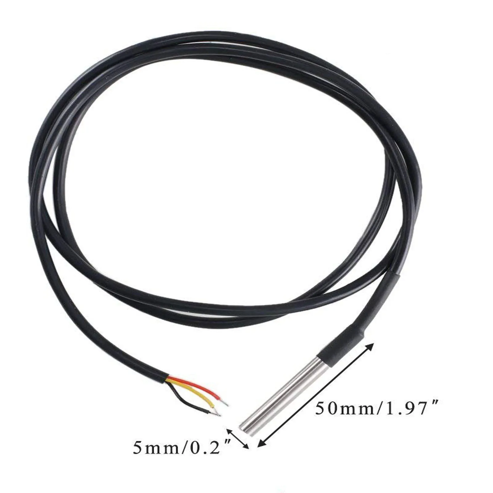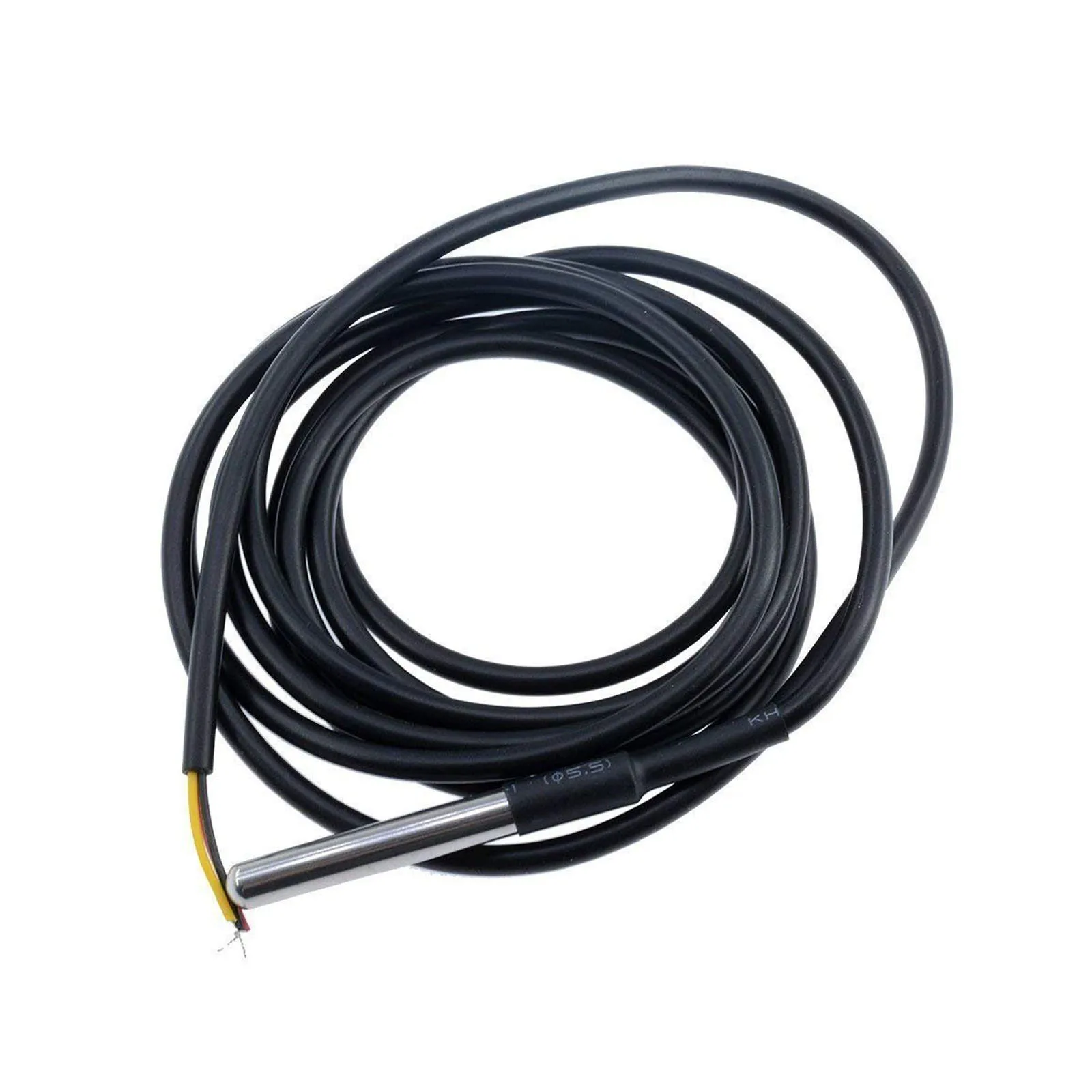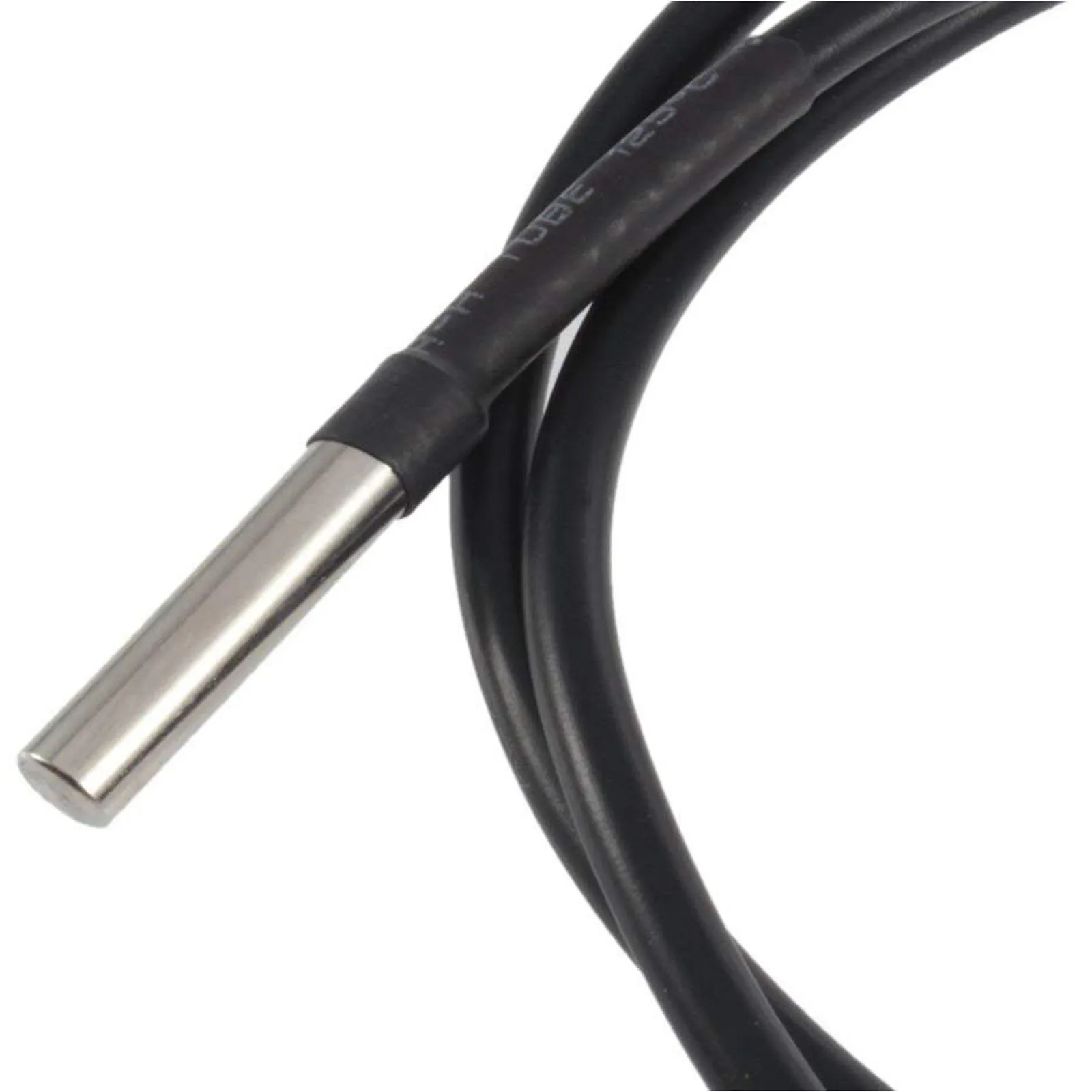 Imagine effortlessly monitoring temperature in any environment with this sleek, waterproof stainless steel probe. Its smooth, cylindrical design and polished surface reflect durability and precision, making it perfect for outdoor, submerged, or industrial applications. With flexible cables available in 1m, 2m, 3m, or 5m, you can customize the length to suit your specific needs. The black insulation adds to its robustness, protecting internal wires while maintaining flexibility. Designed for seamless integration with microcontrollers, this sensor provides accurate readings from -55°C to +125°C. Whether you're automating your garden, maintaining cold storage, or experimenting in a lab, this probe offers reliable performance and long-lasting durability, blending functionality with a modern aesthetic.