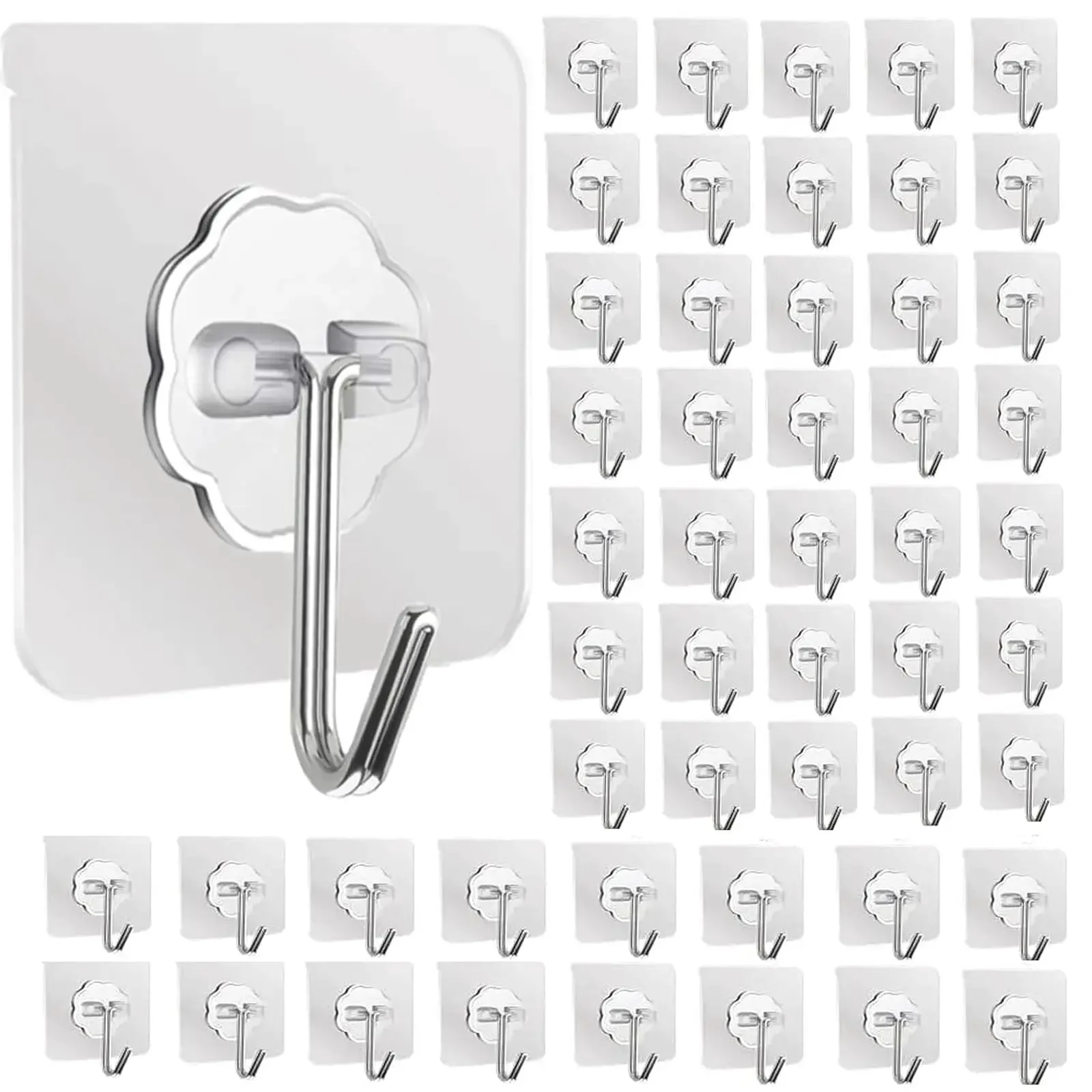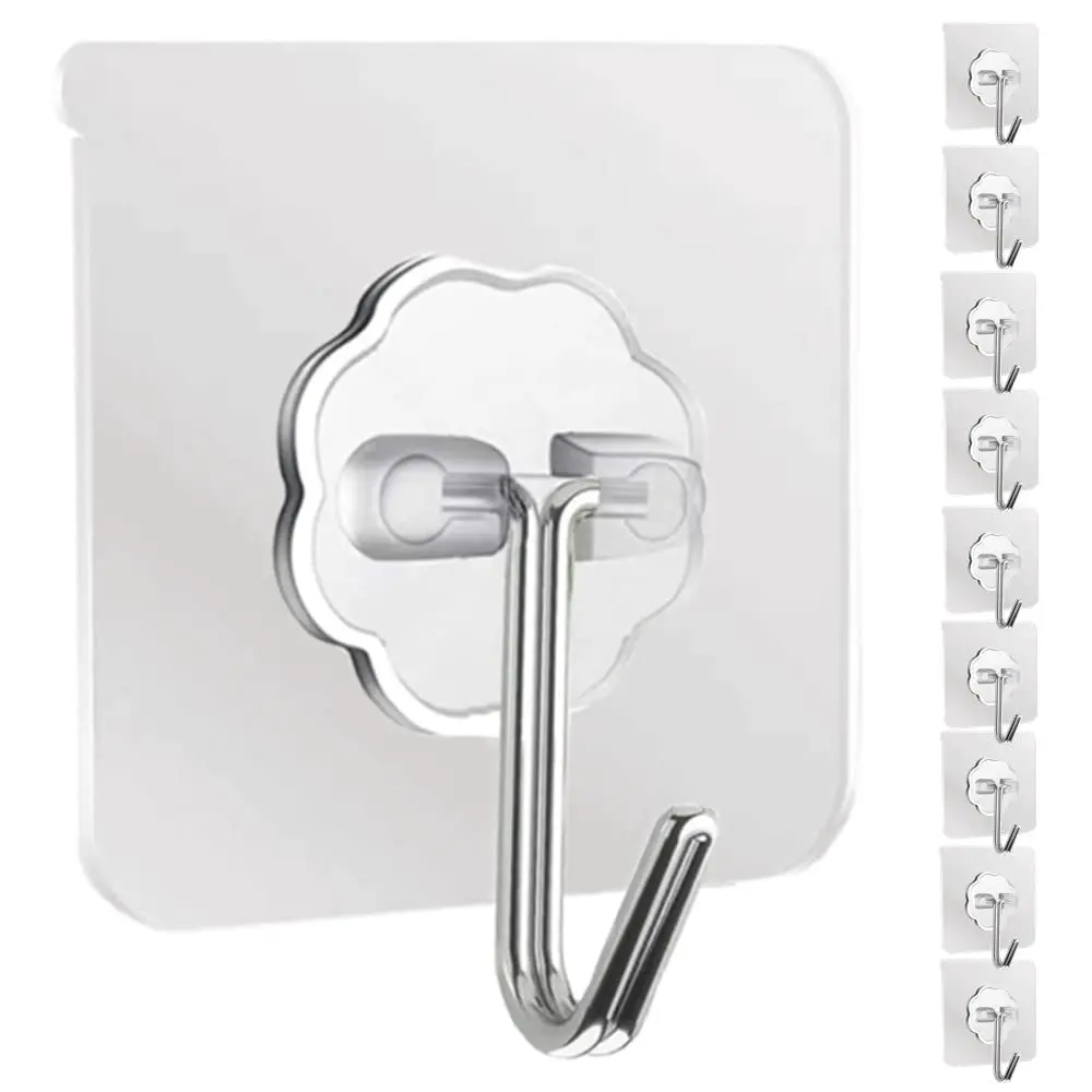 Transform your space with this sleek and practical waterproof wall hook. Crafted from sturdy stainless steel and PVC, it combines strength with elegance, supporting up to 13.2 pounds. Its transparent, self-adhesive design ensures it blends seamlessly into any décor, making it perfect for bathrooms, kitchens, shower doors, or outdoor areas. No need for screws or drilling—simply peel and stick to your preferred surface for a secure hold. Its lightweight construction makes installation and removal effortless, without damaging your walls or surfaces. Reusable after cleaning and drying, these hooks are ideal for hanging towels, utensils, keys, or tools, helping you keep your space tidy and organized with ease. Experience convenience and style in one simple package.