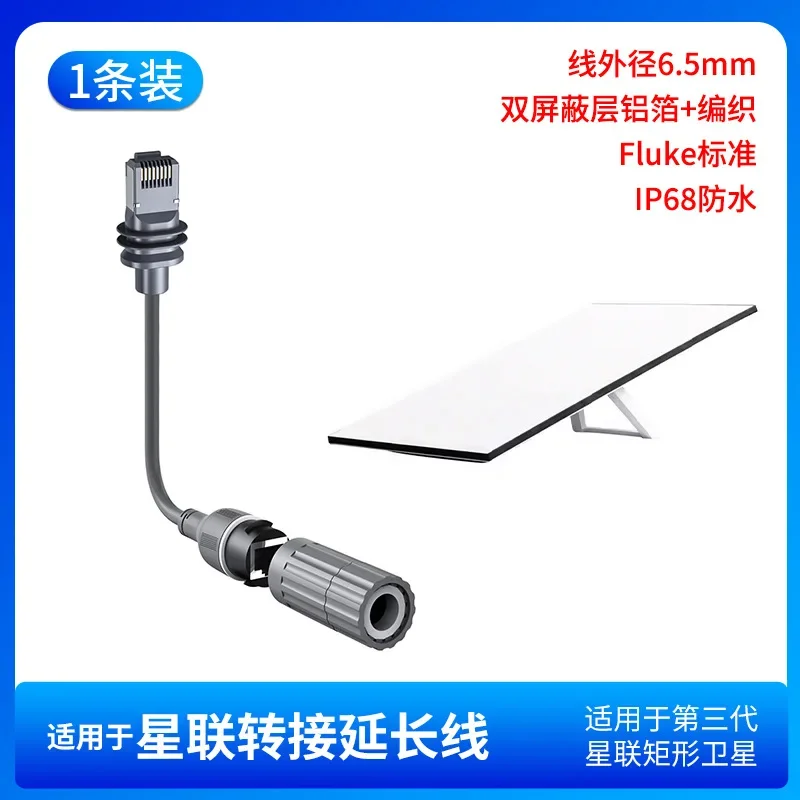 Experience reliable outdoor connectivity with this rugged Starlink Gen3 V3 waterproof extension cable, designed as a CAT7 twisted pair network adapter with IP68 water resistance. Available in lengths of 0.2m, 0.5m, 1m, 2m, and 3m, it features a durable pure copper mesh construction with a 6.5mm diameter and an RJ-45 8P8C connector interface. Capable of supporting data transfer speeds up to 1200Mbps within a temperature range of -20°C to +70°C, this cable ensures strong, weather-resistant connections for your Starlink satellite dish, even in harsh outdoor environments.