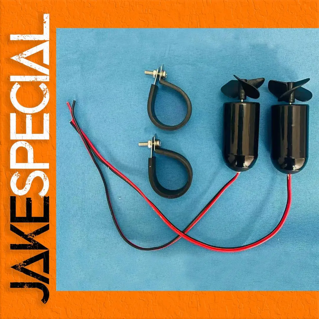 Enhance your remote control projects with this pair of waterproof thrusters designed for RC bait tug boats and submarines. Operating at a voltage range of 3-12V, these motors deliver impressive no-load speeds of 6000 RPM at 3V, 9600 RPM at 6V, 12000 RPM at 9V, and 16000 RPM at 12V, with corresponding working currents of 1A, 1.5A, 3A, and 4.5A. Their sleek, glossy black finish and compact cylindrical design ensure seamless integration into your DIY underwater vehicle modifications. Each motor is equipped with a two-blade propeller for efficient water movement and comes with flexible rubber brackets for secure installation.
