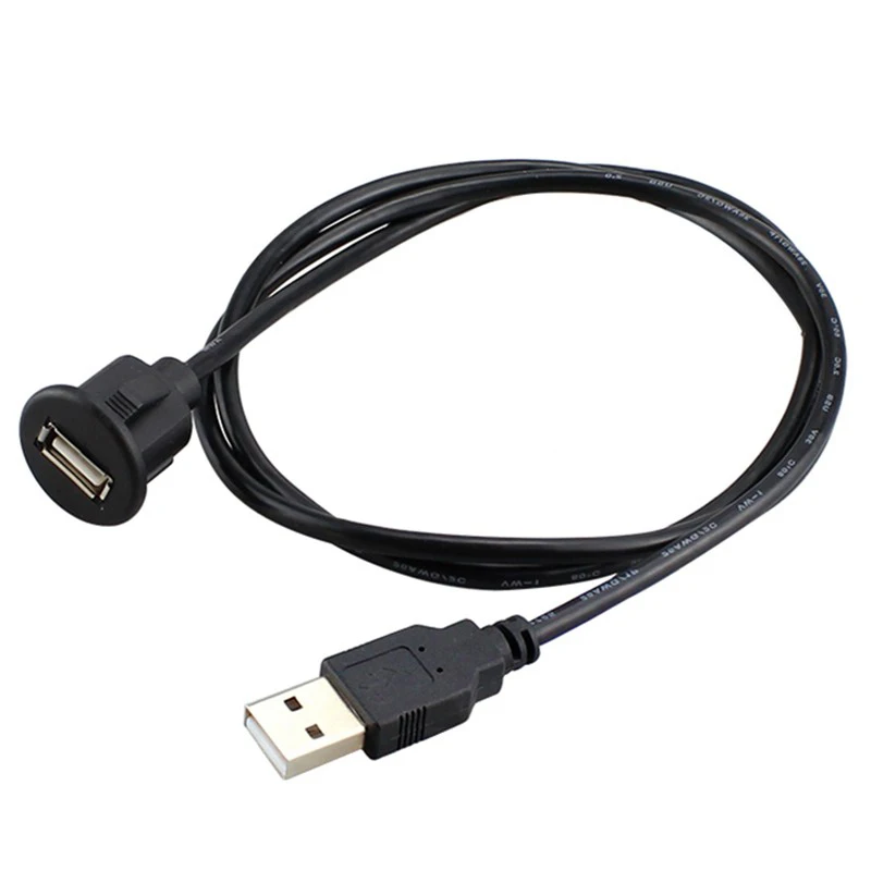 - 1-meter waterproof USB 2.0 extension cable designed for automotive dashboard applications, providing reliable connectivity with a sleek black flexible cable built for durability.