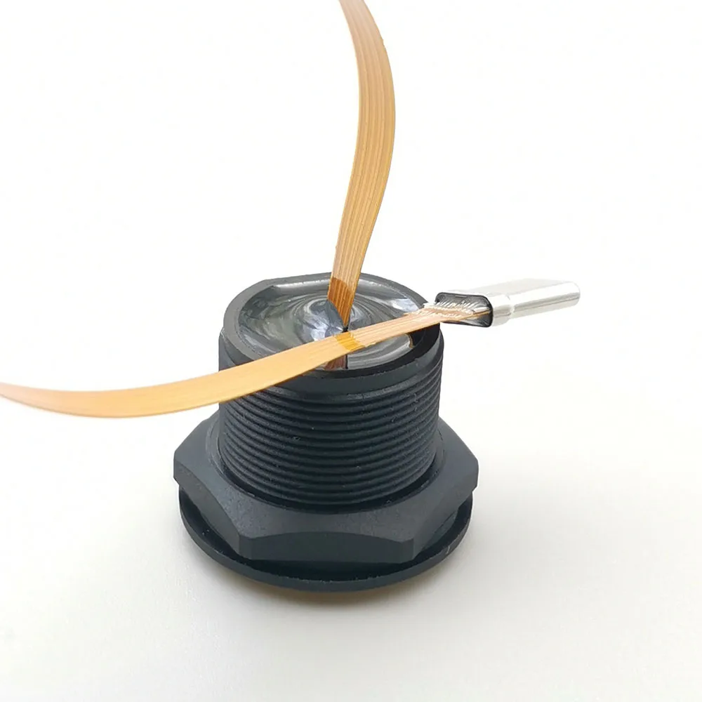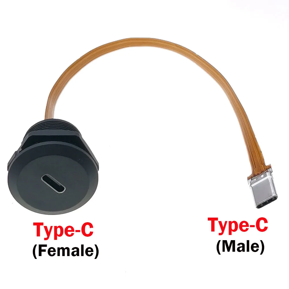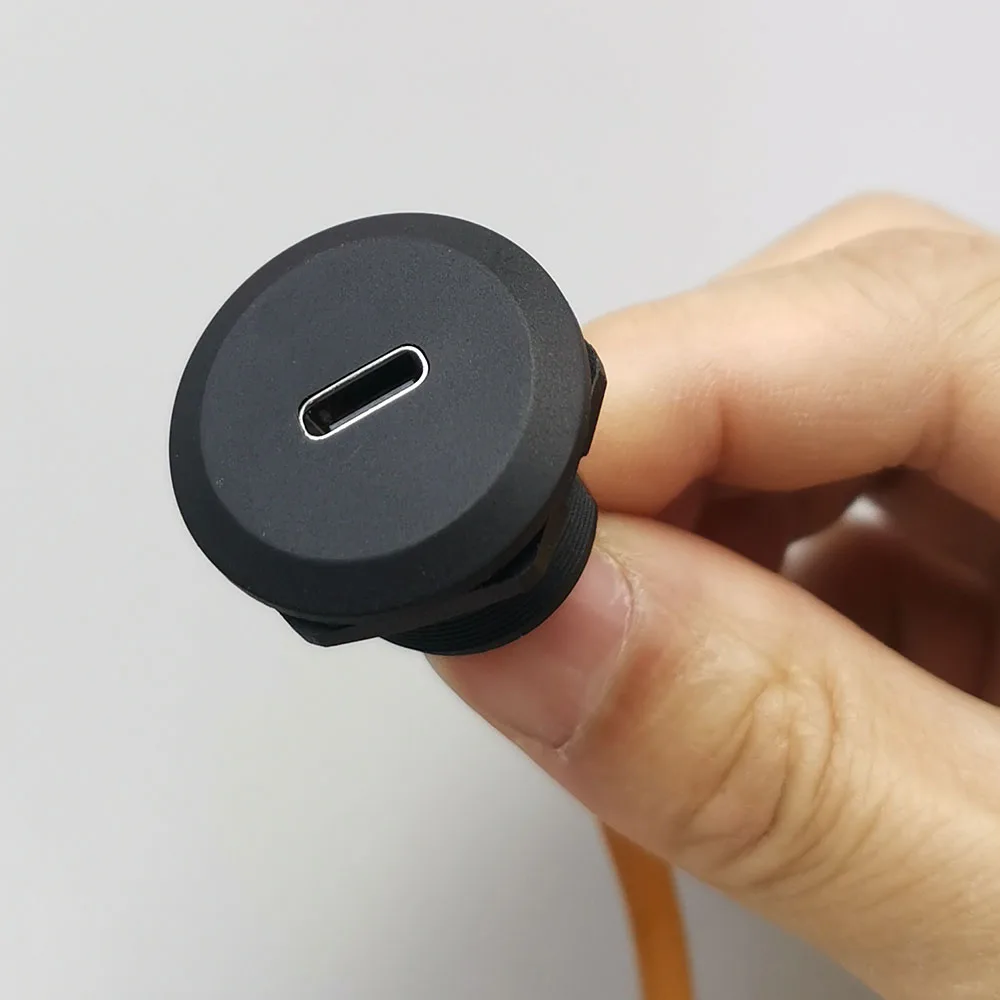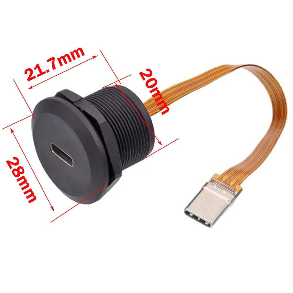 Enhance your electronic projects with this set of 20 circular waterproof screw nut locking plates designed for chassis panel mounting. These durable, water-resistant plates feature a sleek dark gray finish and are compatible with USB Type-C 3.1 connectors supporting voltage options of 5V, 12V, 20V, and 30V. The components include a flexible orange-brown ribbon cable ending in a precision-made metallic connector with multiple pins within a rectangular shell, ensuring reliable, stable connections even in rugged or outdoor environments. Equipped with black plastic locking rings, these components offer a secure fit, combining functionality with robust industrial design for your sophisticated electronic setups.