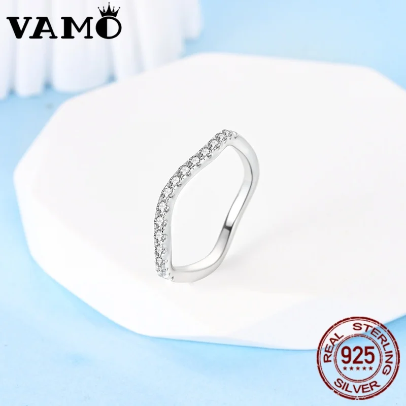 Imagine yourself wearing this stunning VAMO 925 Sterling Silver ring, beautifully crafted with a modern, wave-inspired design. Its unique irregular shape and polished finish embody trendy sophistication, making it perfect for any special occasion. The delicate, smooth wavy band exudes elegance, while the sparkling zircon stones add a luminous touch that catches the light beautifully. Whether you're celebrating a anniversary or adding a stylish accent for a party, this fine jewelry piece enhances your look effortlessly. Crafted from high-quality 925 sterling silver, it ensures durability and a refined appearance. Available in sizes 6, 7, 8, and 9, this versatile accessory fits comfortably on your finger and elevates your personal style with a contemporary flair.
