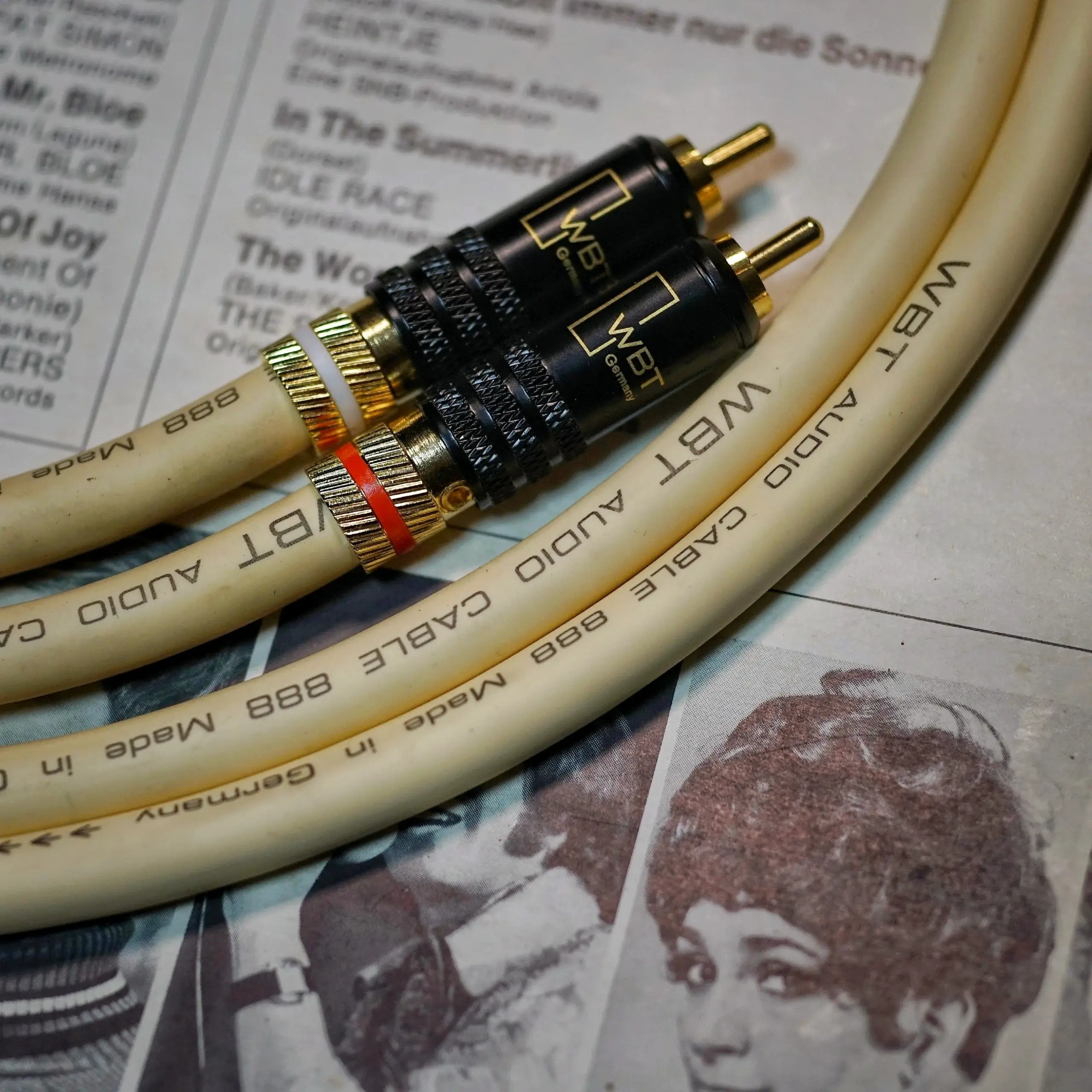 Experience the unparalleled audio clarity with the WBT-888 Original RCA Audio Cable. Featuring premium male RCA connectors adorned with black and gold accents, this cable not only looks sophisticated but is built for the best performance. With a robust 9mm diameter and a configuration of two cores plus high-density shielding, it reduces interference effectively. Crafted from high-purity oxygen-free copper, it ensures an exceptional sound experience, whether you're connecting to an amplifier or other audio components. Choose from multiple lengths—0.5m, 1m, 1.5m, 2m, 3m, 4m, and 5m—to meet your specific audio needs.