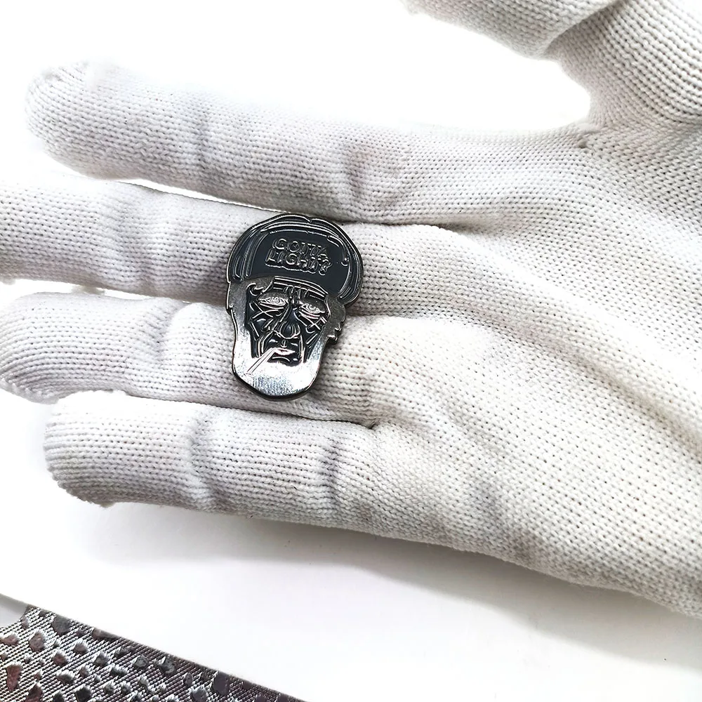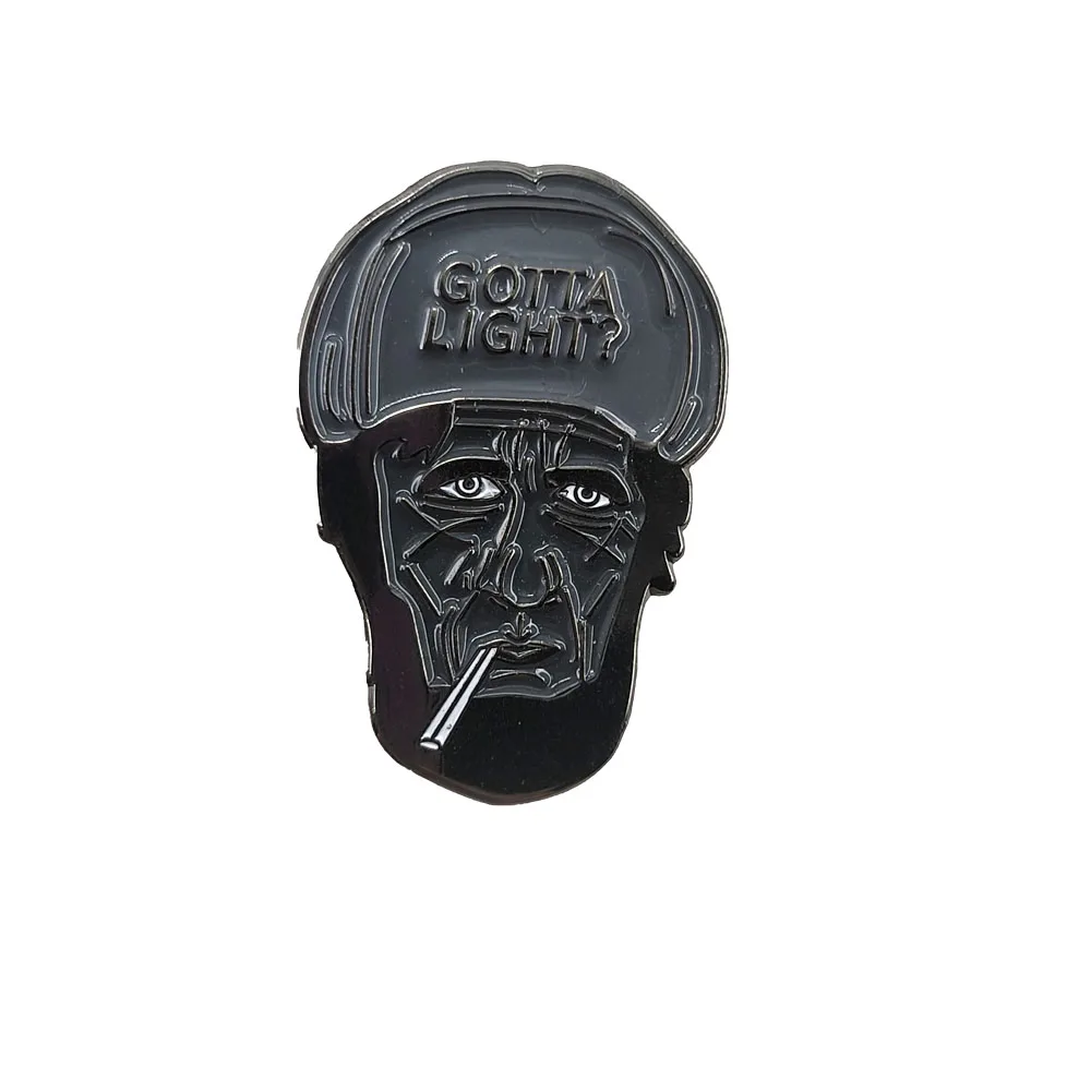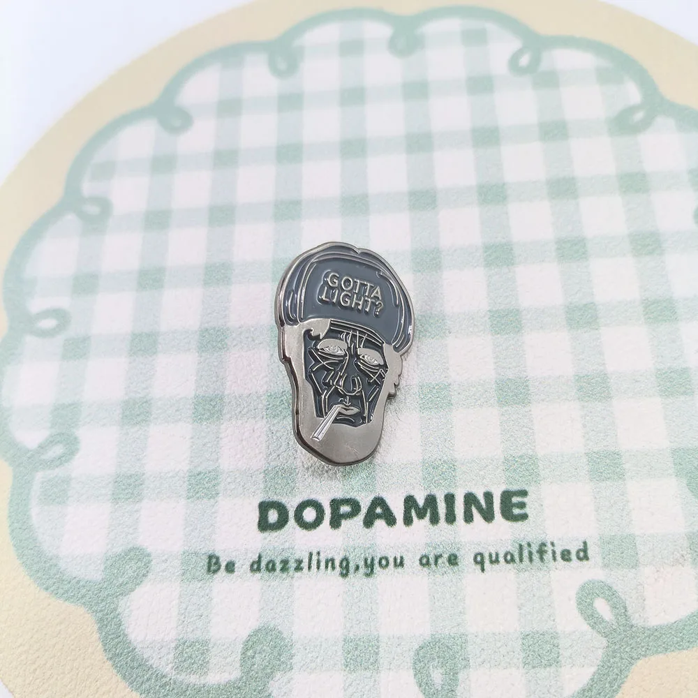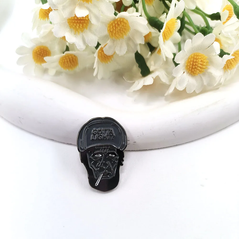 Imagine adding a touch of rebellious sophistication to your wardrobe with this eye-catching enamel pin. Crafted from copper, this approximately 30mm brooch features a detailed cartoon portrait of an aged character, complete with deep wrinkles, intense eyes, and a cigarette in hand. The glossy black enamel highlights the intricate line work, emphasizing the vintage-inspired look. The cap with embossed “GOTTA LIGHT?” adds a cheeky, rebellious vibe perfect for expressing your unique style. Its unisex design blends classic cool with edgy character, making it an ideal accessory for fashion-forward individuals. Whether on jackets, bags, or hats, this pin brings personality and style to any outfit effortlessly. It’s a statement piece that sparks conversations and sets you apart.