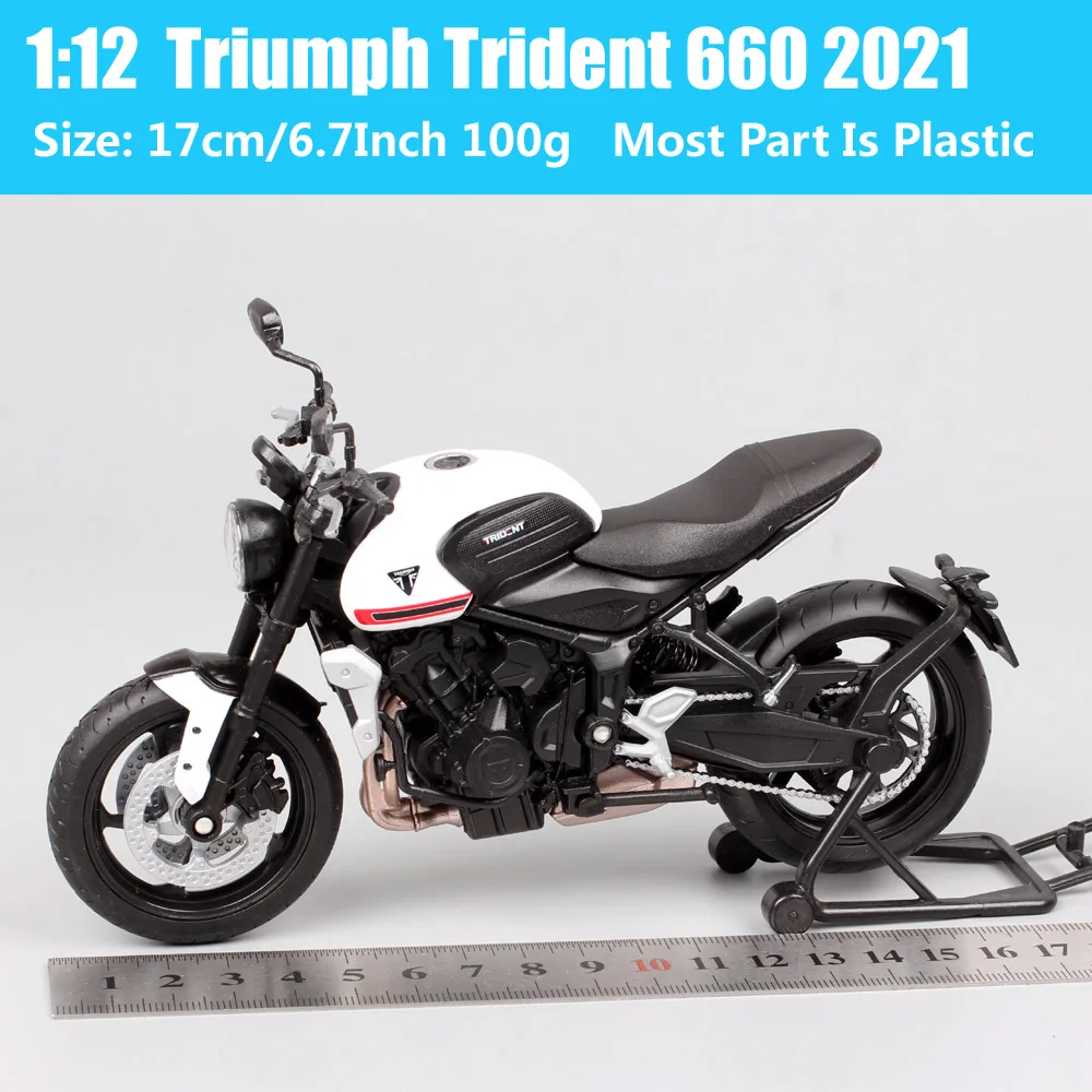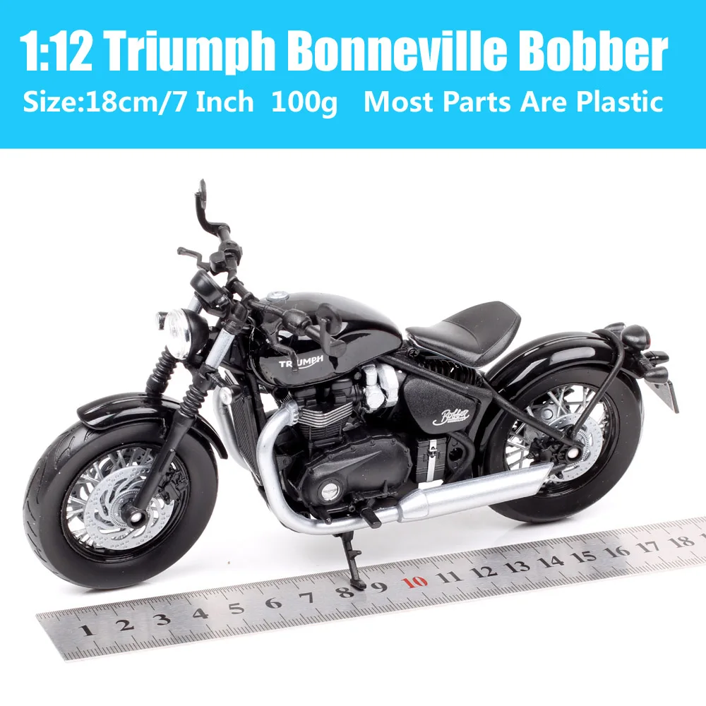 Imagine adding this meticulously crafted 1/12 scale Triumph Bonneville Bobber Tour Trident 660 2021 motorcycle model to your collection. With precise details and realistic features, this diecast replica captures the spirit of the original bike, offering a tangible connection to motorcycle enthusiasts’ passion. Its high-quality plastic construction ensures durability while maintaining an authentic appearance. Whether displayed on your shelf or used as a hobby piece, this model invites you to relive the thrill of the ride. Perfect for collectors over age 14, it transforms your space into a showcase of motorcycle admiration. Feel confident in your choice because this model reflects craftsmanship and attention to detail designed specifically for bike lovers like you.