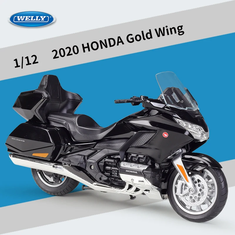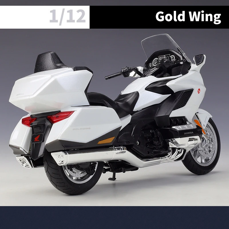 - This 1:12 scale model features a durable alloy and plastic build, replicating the sleek design and technical details of the Honda Gold Wing touring motorcycle with precision.