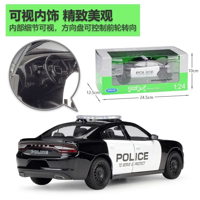 Keys features of the WELLY Dodge Charger Pursuit Model Car
