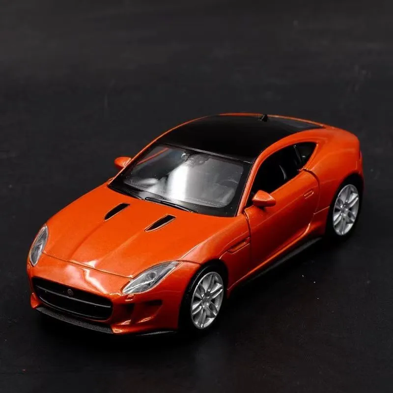 Experience the thrill of luxury with this highly detailed 1:24 scale die-cast alloy and plastic model of a Jaguar F-Type Coupe, available in vibrant orange or classic white. This collectible features a sleek, aerodynamic design with smooth flowing lines, a prominent black grille with subtle emblem, sharp angular headlights, elongated hood vents, sculpted side curves, and detailed silver alloy multi-spoke wheels with realistic tread tires. Crafted for enthusiasts and collectors aged 4 and above, it offers authentic embellishments, polished finishes, and meticulous detailing, making it perfect for display or imaginative play without requiring batteries or electricity.