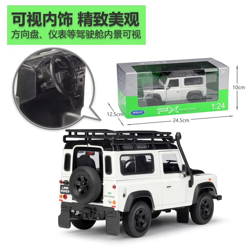- Precisely scaled at 1:24, this model offers an authentic size perfect for display and collection, capturing the real Land Rover Defender's shape and rugged exterior with meticulous detail.