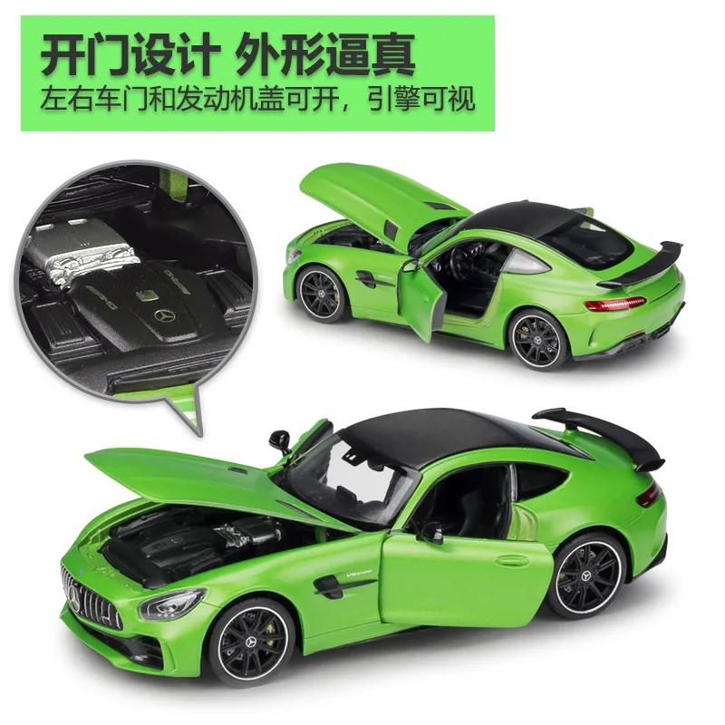 - Highly detailed diecast metal construction that accurately replicates the AMG GT R’s sporty design and aggressive stance for true realism.