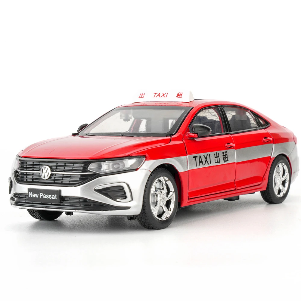 Experience the sleek realism of the WELLY 1:24 scale Passat 2023 diecast alloy car model, crafted from alloy and plastic with no electrical components. This detailed replica measures approximately 1/24th of the actual vehicle and features sound and light functions, operable through a pull-back mechanism. Available in vibrant colors including TAXI Red, TAXI Blue, TAXI Yellow, White, Police White, Black, Blue, and Police Black, it showcases a modern design with a glossy finish, clear headlights, a prominent grille, silver alloy wheels, and a streamlined silhouette. Perfect as a collectible ornament or toy for enthusiasts aged 4 and above.