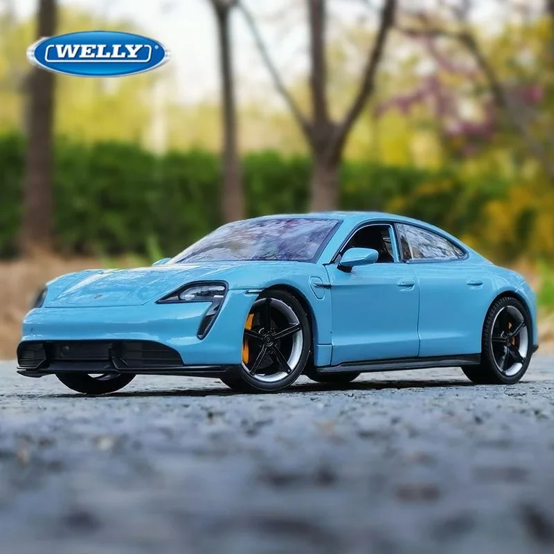 Indulge in the exquisite craftsmanship of this WELLY 1:24 Porsche Taycan Turbo S diecast model, featuring a stunning silver finish that radiates sophistication. The aerodynamic lines and sleek profile are a testament to Porsche's engineering excellence, complemented by intricately designed LED headlights. As you admire this model, envision showcasing it on your shelf or desk, where it will undoubtedly catch the eye of every admirer. The sporty black wheels with contrasting yellow brake calipers further emphasize the high-performance nature of this remarkable piece. Perfect for both collectors and enthusiasts, this model brings the luxurious allure of Porsche right into your living space.
