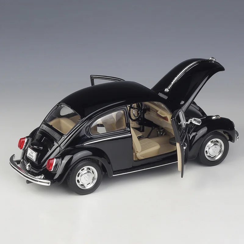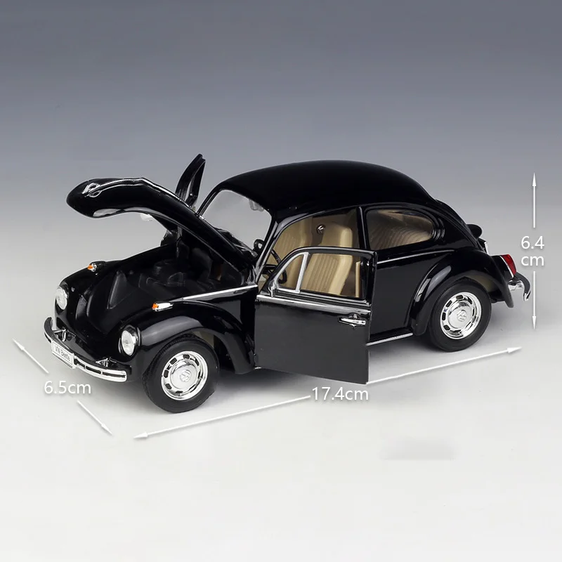 - The model is crafted from alloy and plastic, measuring approximately 1:24 scale, capturing all the vintage details of the iconic Volkswagen Beetle with careful attention to authenticity.