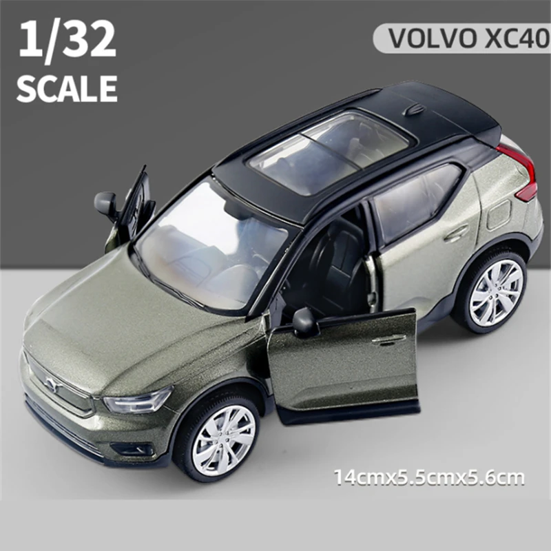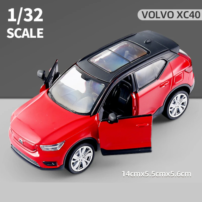 Experience the realism of the 1:32 scale XC40 diecast metal model, crafted from durable alloy and plastic in striking red, green, or black finishes. This meticulously detailed replica features a modern front grille, sleek headlights, silver multi-spoke wheels with textured tires, and transparent windows revealing an intricately designed interior. Equipped with sound and light functions that activate through pressable parts, it offers an engaging display without the need for batteries or electricity. Perfect for collectors and enthusiasts aged 4 to 12 and adults, this high-quality model combines craftsmanship and functionality for a captivating miniature of the stylish XC40.