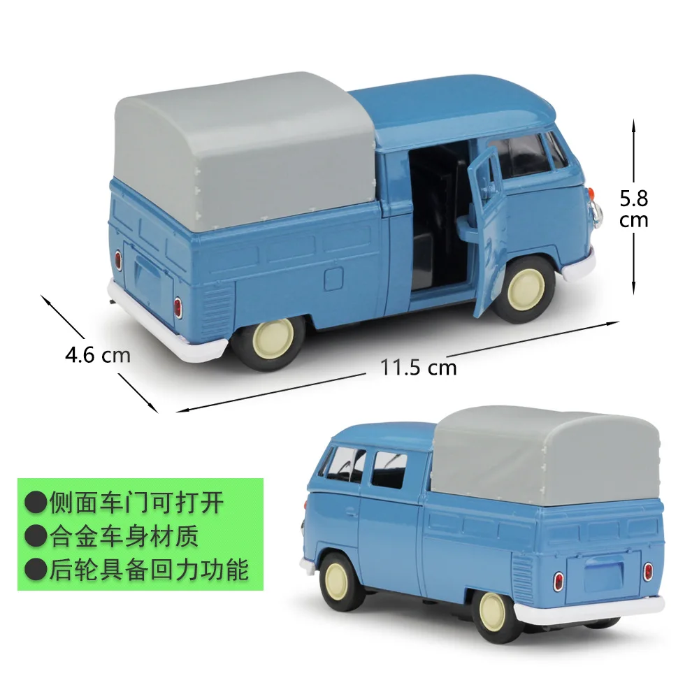 - Precisely detailed 1:36 scale captures the vintage design of the 1963 VW T1 Double Cabin Pickup seamlessly.
