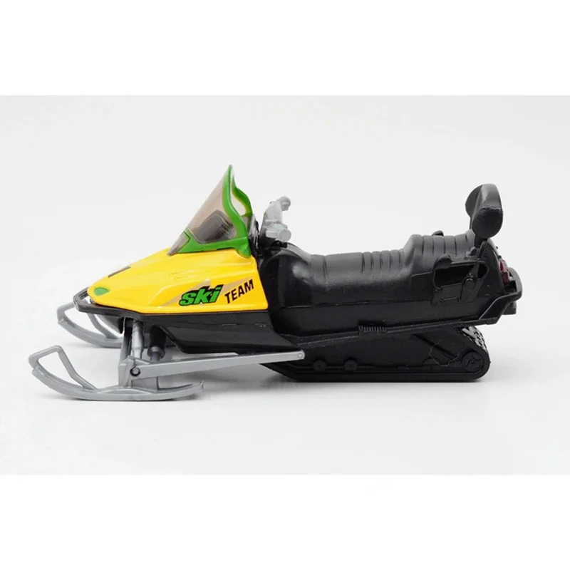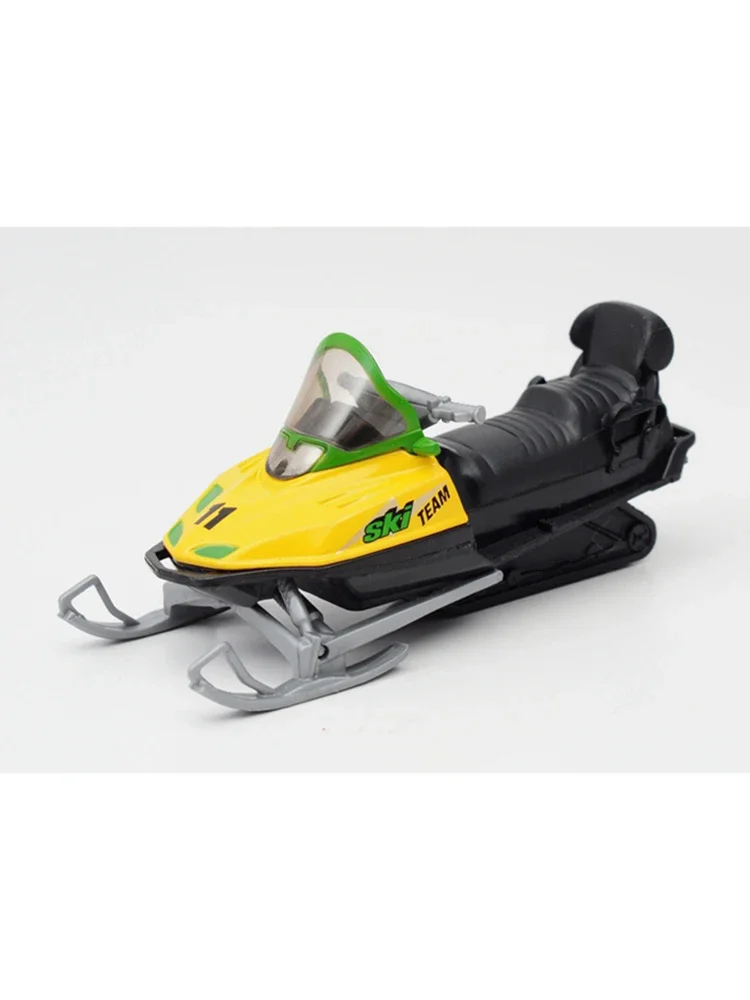 Introducing the WELLY AC0357 Diecast Snowmobile Model, a stunning addition to your collection. This small-scale model, measuring approximately 9 cm long, 3 cm wide, and 4 cm tall, is designed at a 1:76 scale. It features a bright yellow body accented with bold green elements and black detailing, complete with a clear windshield, textured black seat, and realistic grey ski runners. Constructed from high-quality alloy and plastic, this non-electric model does not require batteries, making it perfect for static display or gifting to enthusiasts. Enhance your showcase with this captivating piece that embodies vibrant colors and exquisite detail.