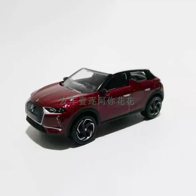 This 1:64 scale diecast model of the DS 3 CROSSBACK SUV features a detailed replica measuring approximately 7 cm in length, 3 cm in width, and 2.5 cm in height. Crafted from alloy and plastic, it showcases sleek, modern design elements with smooth curves, narrow headlights, and stylish alloy wheels with silver accents. Available in two color options, labeled as ‘A’ and ‘B,’ the model is perfect for collection, static display, or gifting to enthusiasts. It is a finished, non-electronic piece designed for adult collectors, with no batteries or electrical components, offering a realistic and refined miniature of the iconic SUV.