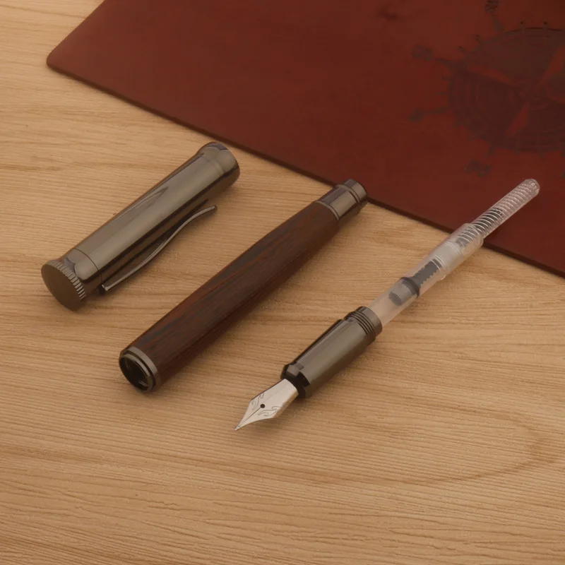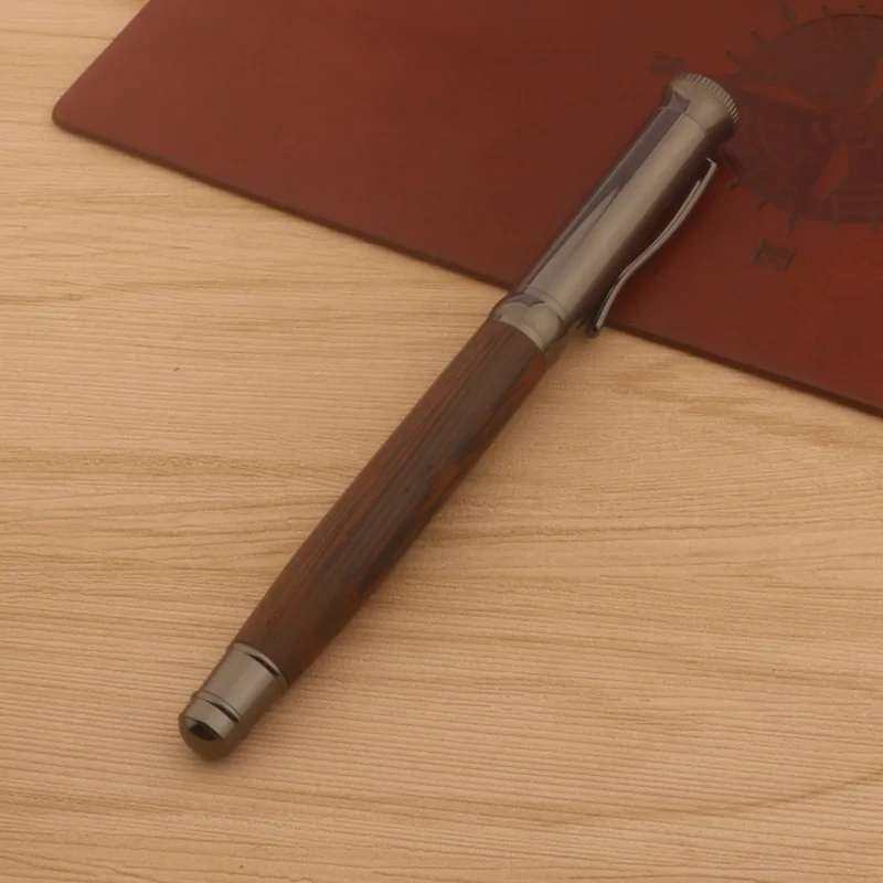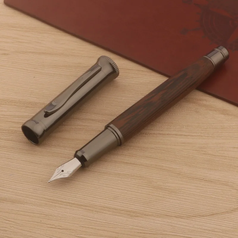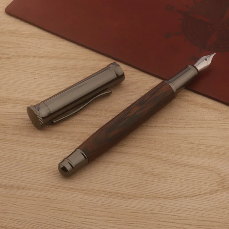 Imagine yourself holding this luxurious fountain pen, crafted from rich Wenge Grey wood with a sleek, polished finish. Its intricate metallic nib, etched with swirling patterns, exudes sophistication and craftsmanship. The 1.5mm Naginata nib offers variable line thicknesses, perfect for expressing your personal style on paper. Seamlessly transitioning from the dense wooden body to the metal nib, the pen combines natural warmth with refined metallic detailing. Whether you're jotting notes, signing documents, or creating art, this pen elevates your writing experience. Designed for comfort and precision, it makes every word feel special. Its customizable features allow you to adapt it to your unique needs, making it a treasured tool for professionals and stationery enthusiasts alike.