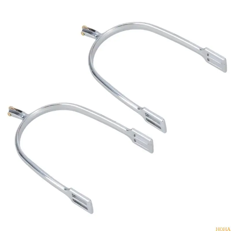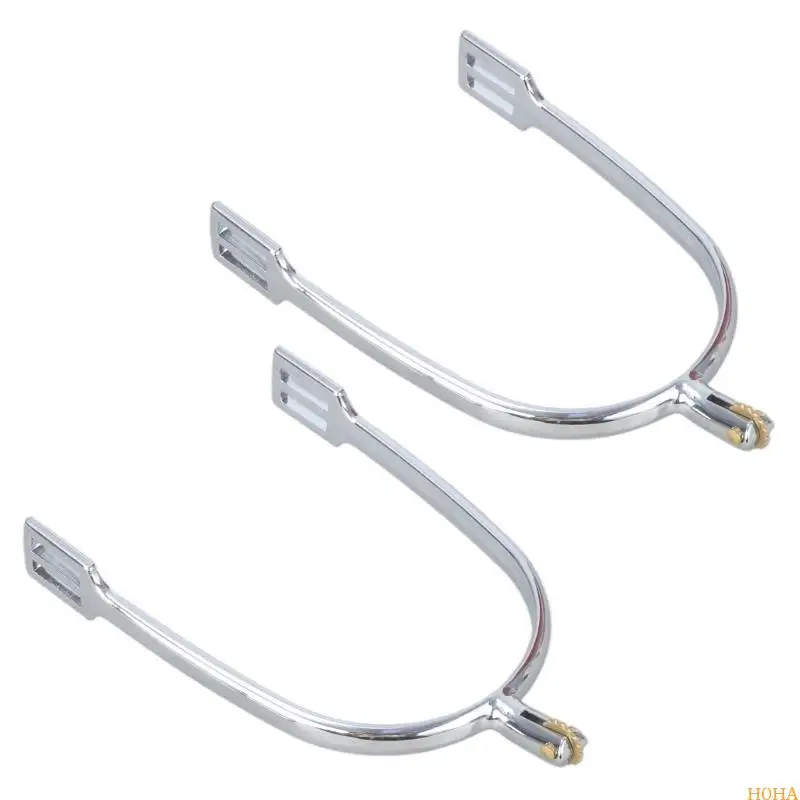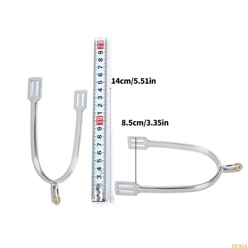 Enhance your riding experience with this pair of zinc alloy western cowboy spurs, measuring approximately 14 cm (5.51″) in length with an 8.5 cm (3.35″) spacing. Featuring copper rowels with serrated edges, these spurs are designed for gentle, effective contact to improve control and communication with your horse. Suitable for training, competitions, and ranch work, they are ideal for horses with increased sensitivity or no prior experience with spurs. The minimalist, polished silver-tone finish emphasizes durability and functionality, ensuring a comfortable fit with a sleek, practical style for adult riders committed to improving their horsemanship skills.