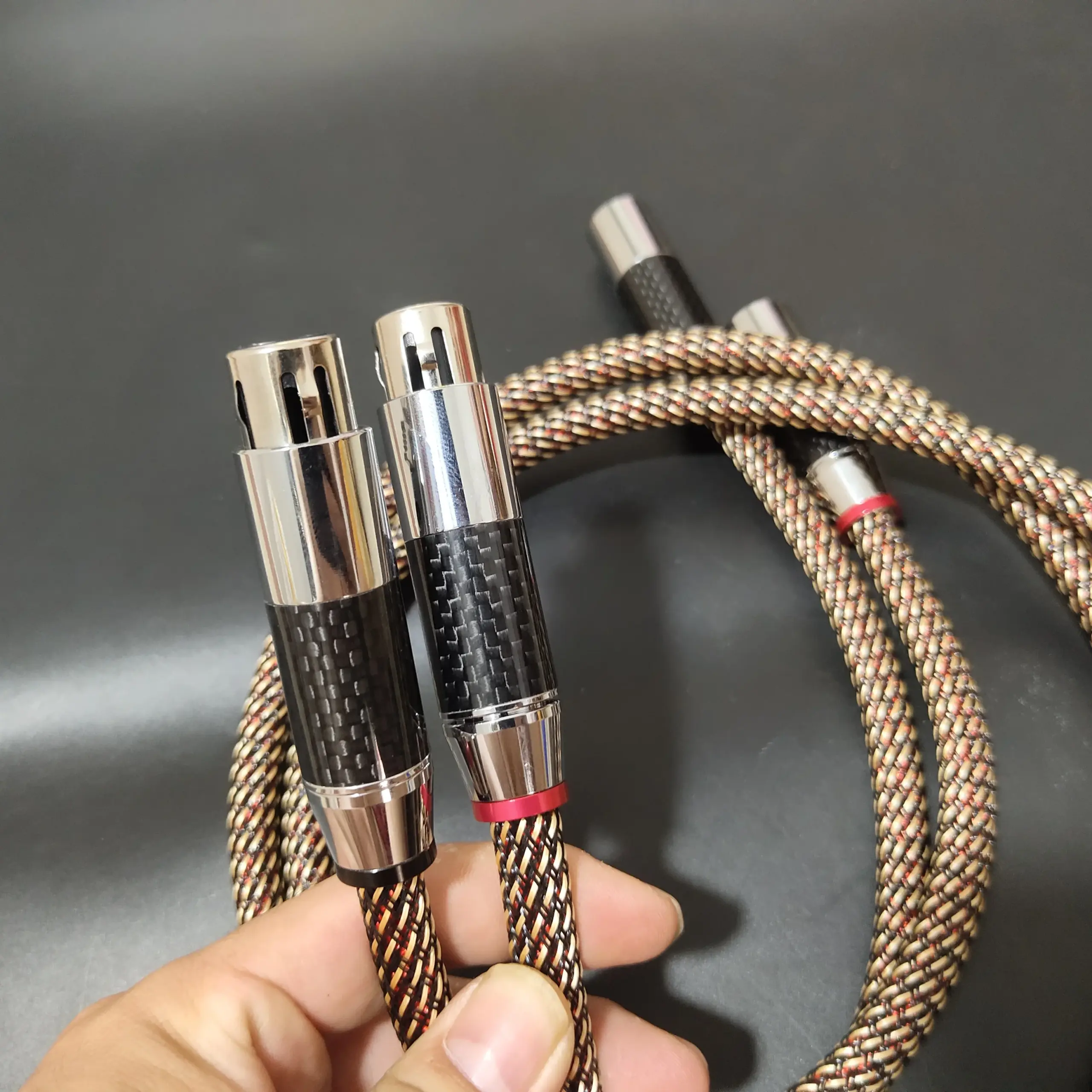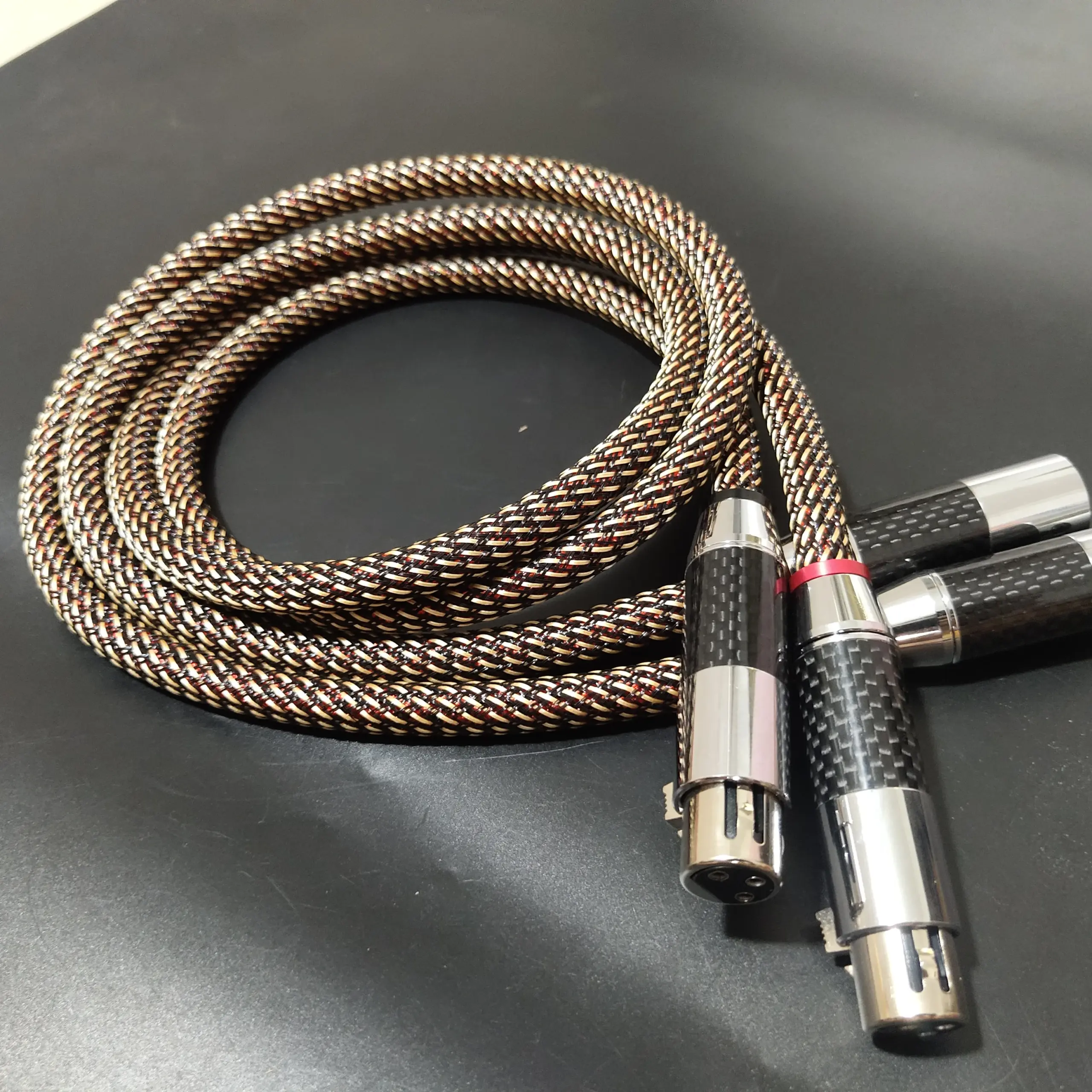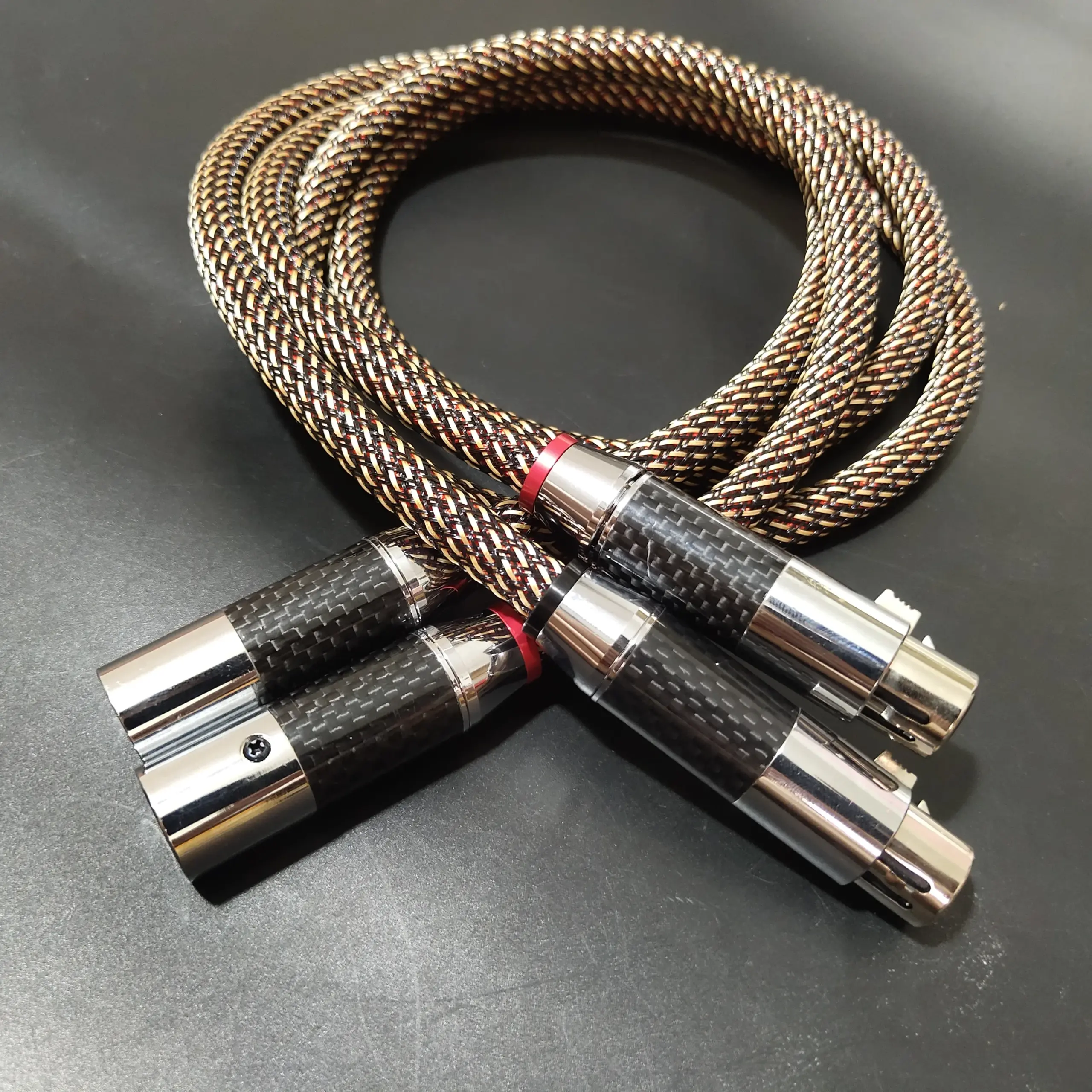 - Polished rhodium-plated XLR connectors featuring a carbon fiber pattern add aesthetic appeal while ensuring corrosion resistance and long-lasting durability.