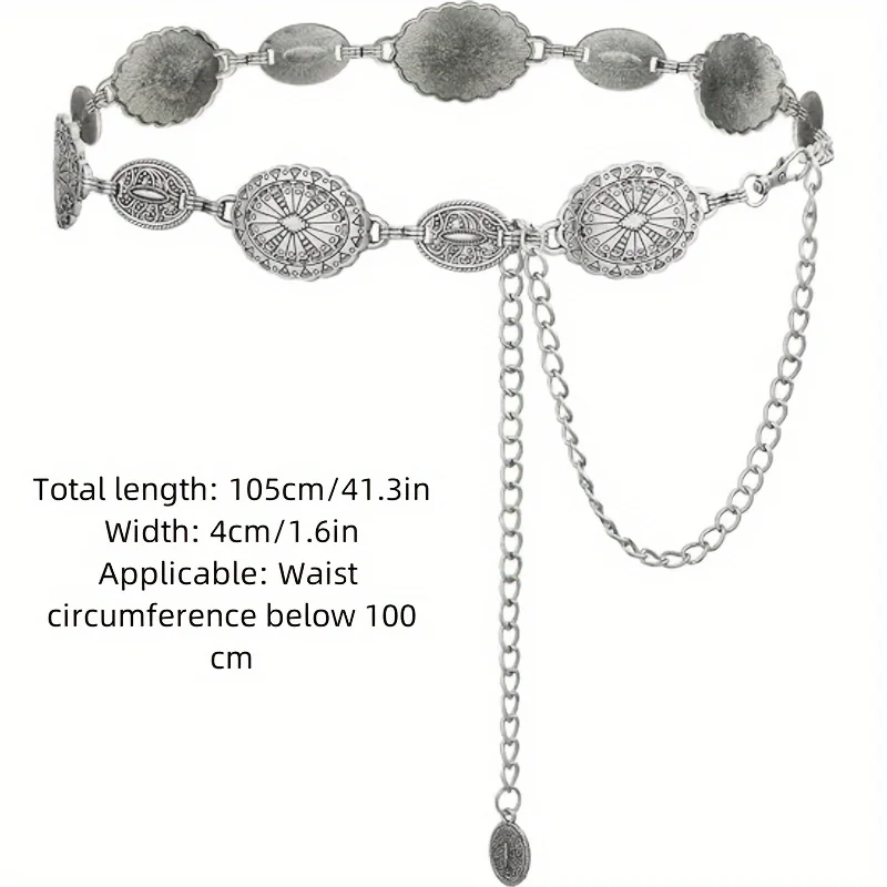 - Constructed from durable metal, this belt promises longevity and resistance against wear and tear, ensuring it remains a treasured accessory in your collection for years to come.