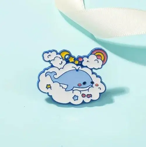 Imagine yourself enjoying a bright, cheerful day with this adorable whale brooch perfectly accessorizing your outfit. Crafted from durable zinc alloy, it features a lively cartoon whale design with a rounded body in soft, delightful colors. The cheerful facial expression, with a small black eye and broad smiling mouth, radiates friendliness. Fluffy cloud-like water puffs on its back and colorful balloons—yellow, red, and blue—add whimsical charm. Its smooth enamel finish and bold outlines enhance its trendy, trendy appeal, making it suitable for both casual and chic styles. Available in six vibrant metal shades, this high-end-themed badge effortlessly combines fashion with a fun-loving attitude, making it a stylish addition to your jewelry collection or a thoughtful gift for loved ones who adore charming accessories.