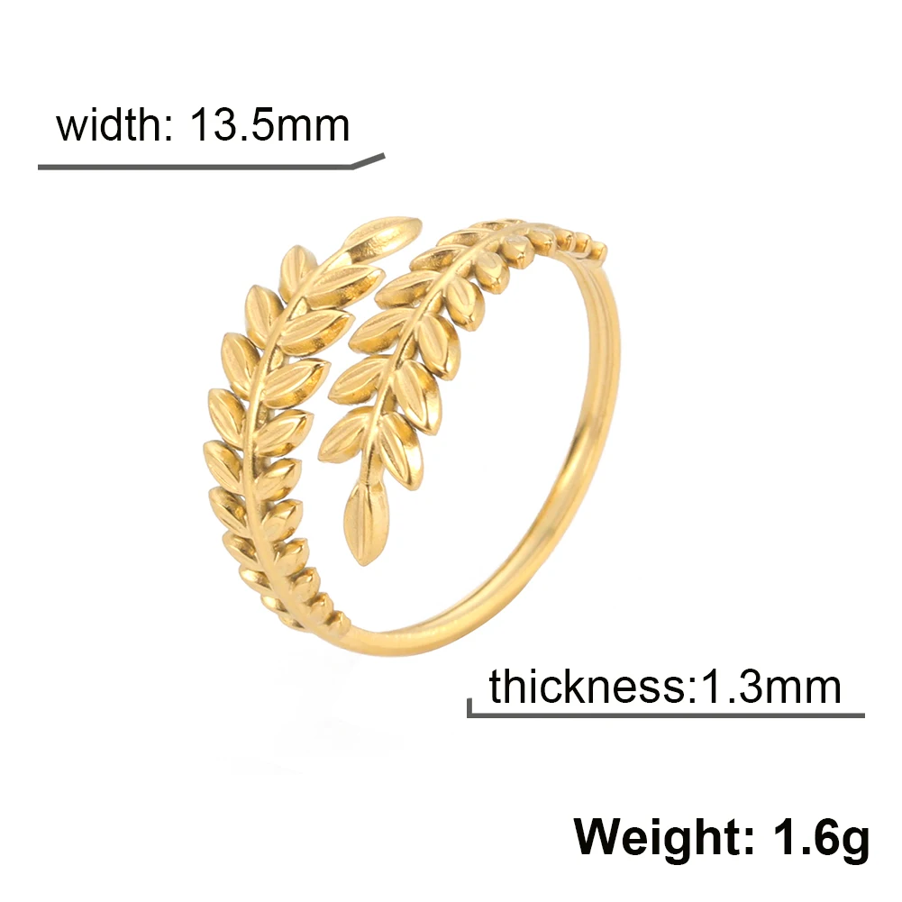 Imagine yourself wearing this stunning open ring that beautifully combines nature-inspired design with modern elegance. Crafted from durable stainless steel and finished with a bright, lustrous 18k gold plating, this piece features delicate wheat ear motifs at each end, gracefully highlighting a botanical theme. Its slender, adjustable band ensures a perfect fit for any finger size, making it ideal for daily wear or special occasions. Whether you're celebrating an anniversary, attending a party, or simply want to add a touch of bohemian flair to your outfit, this ring effortlessly elevates your style. Its resistance to rust, fading, and deformation guarantees lasting beauty and comfort, becoming a versatile addition to your jewelry collection.