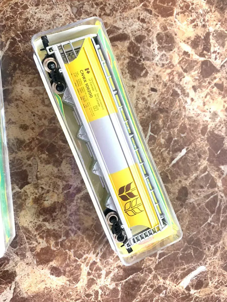 - This diecast model scaled at 1:160 offers a realistic depiction with 4 detailed wheat grain transporter carriages in various color options including HF-33015, HF-33014, HF-33012, G-one piece, D-one piece, and plain variants.