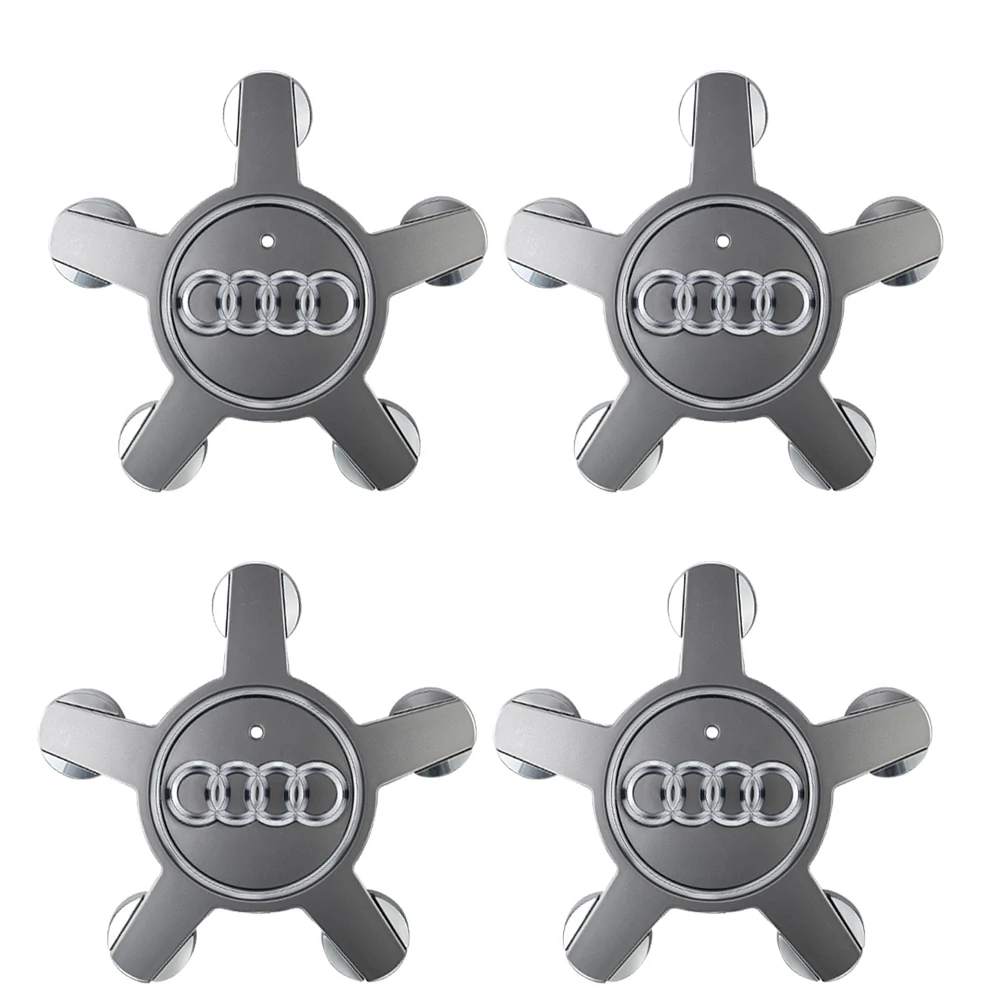 - Each cap features a raised, three-dimensional four-ring emblem in the center, adding depth and a premium look to your vehicle’s wheels, complemented by five star-like protrusions for secure fit and style.