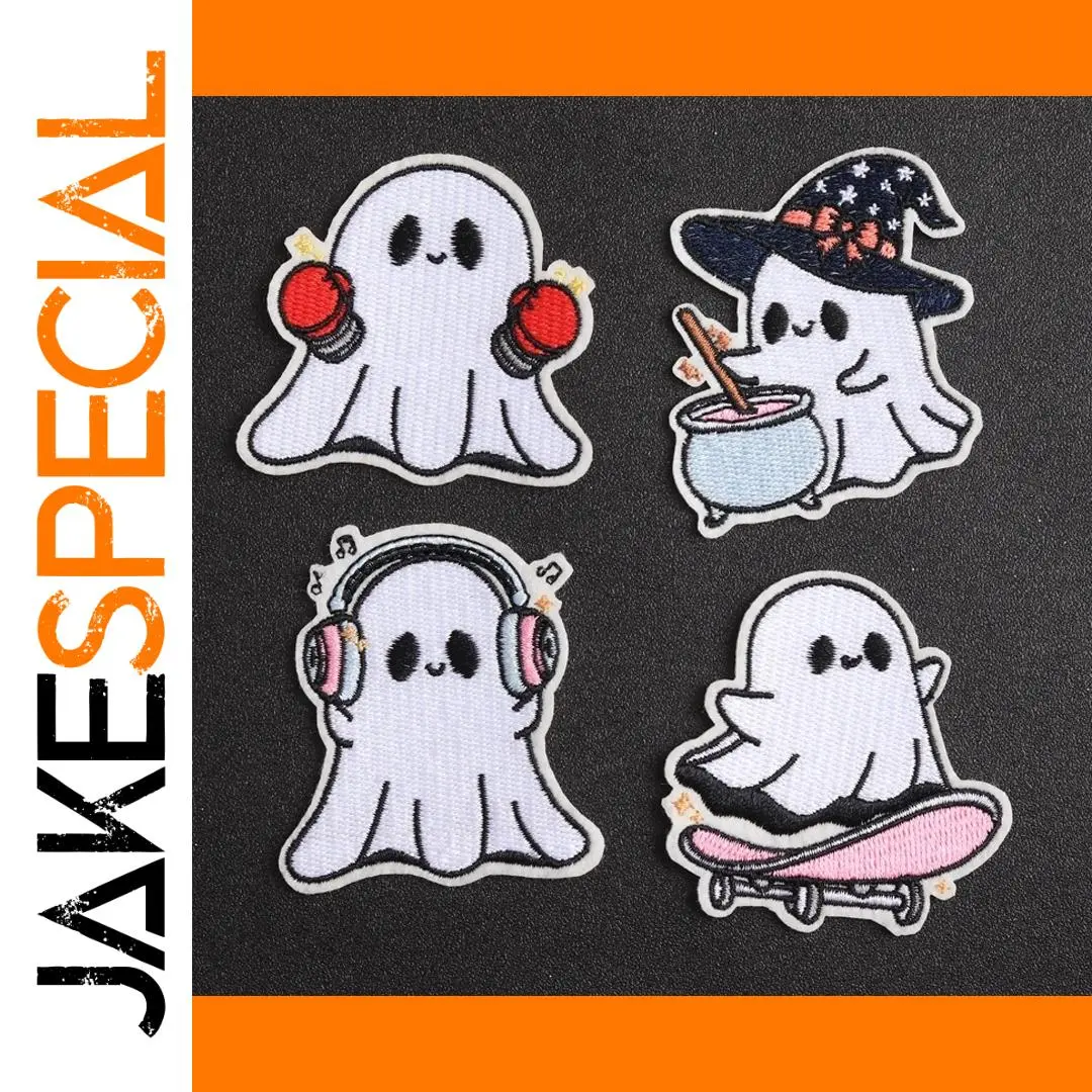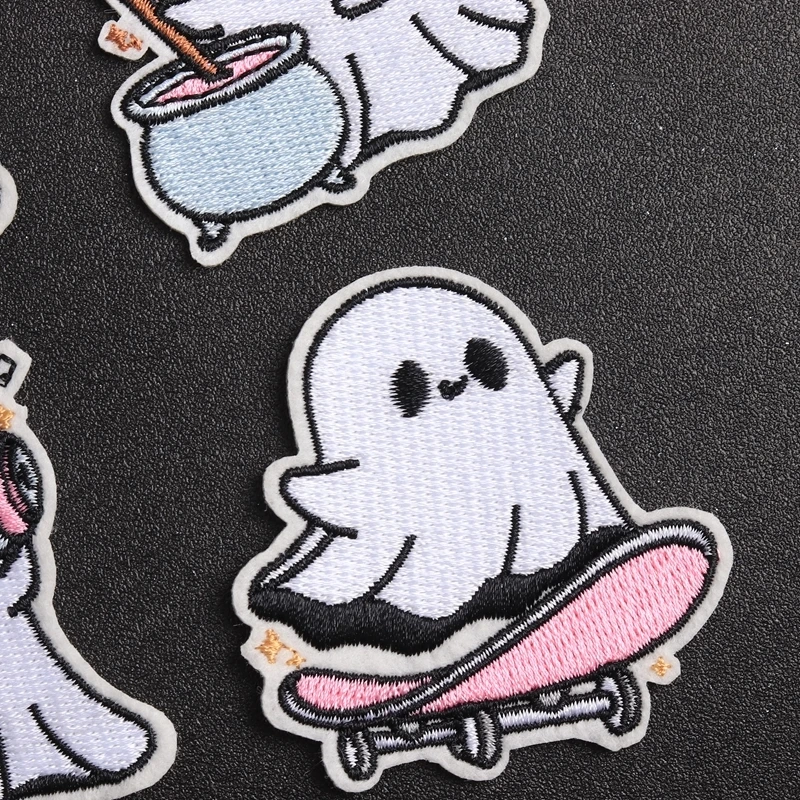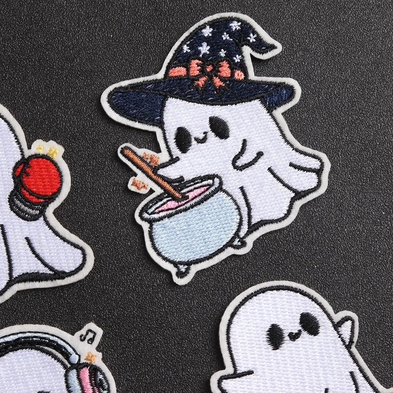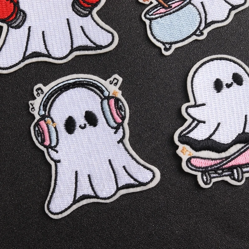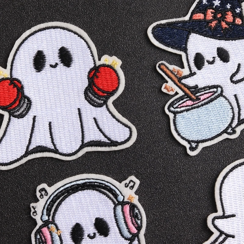 Bring fun and charm to your wardrobe with this adorable series of embroidered ghost patches. Crafted with vibrant colors and playful designs, these patches feature charming ghost characters in lively poses, each accessorized uniquely. Whether riding a skateboard, listening to music, dressed as a witch, or ready to fight, these patches add a whimsical touch to any fabric. Made from eco-friendly, non-woven printed fabric with a handcrafted 3D effect, they offer a delightful visual appeal. Perfect for customizing T-shirts, jackets, bags, or curtains, they let you express your personality with a fun, youthful spirit. Easy to apply with iron-on technique, these patches transform plain items into lively, personalized accessories in minutes.