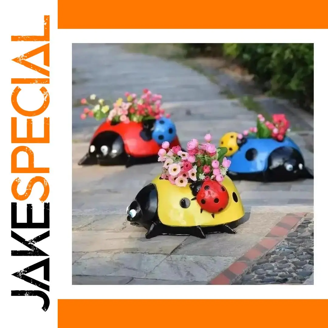 Transform your garden into a whimsical fairy-tale landscape with this charming resin ladybug flower pot, measuring 15 cm in length, 10 cm in width, and 5 cm in height, weighing 258 grams. Crafted with a smooth, glossy finish, it features a playful, rounded body adorned with black spots, black legs, and a black head with white eyes. Available in vibrant blue and red, each piece is handmade, non-chemical, and designed to evoke a pastoral, fairy-themed ambiance. Crowning the ladybugs are dense clusters of colorful artificial flowers in pink, white, and green shades, adding a lively, cheerful touch to your outdoor decor.