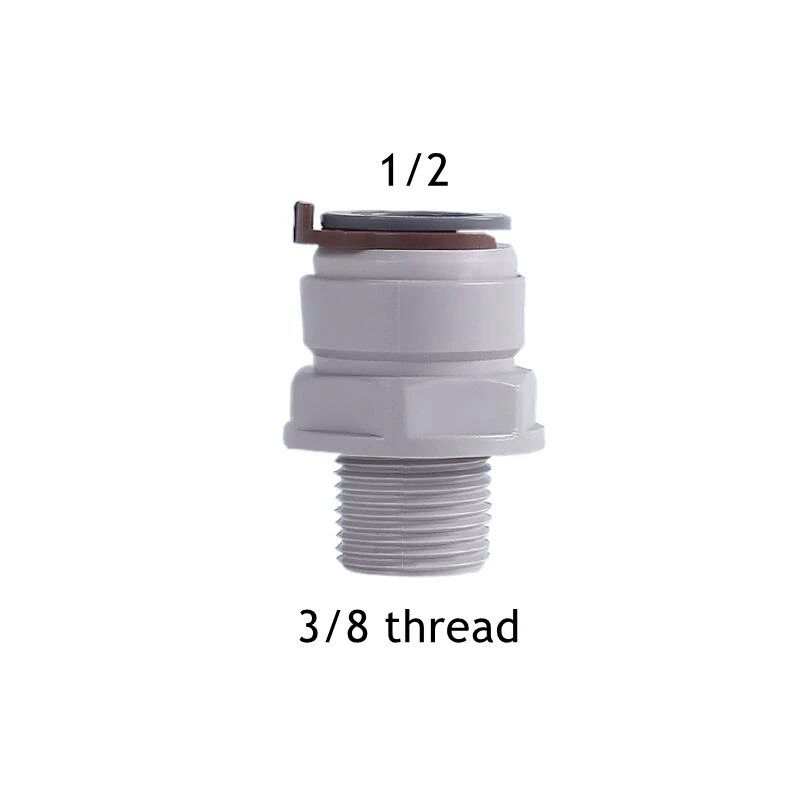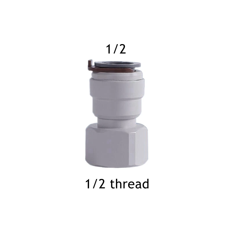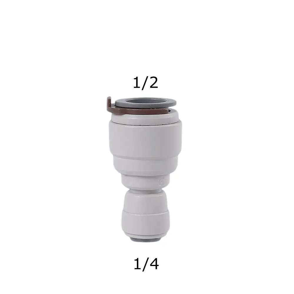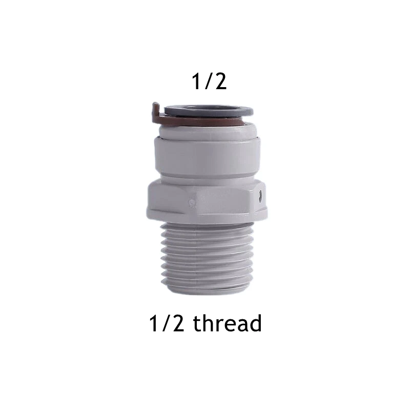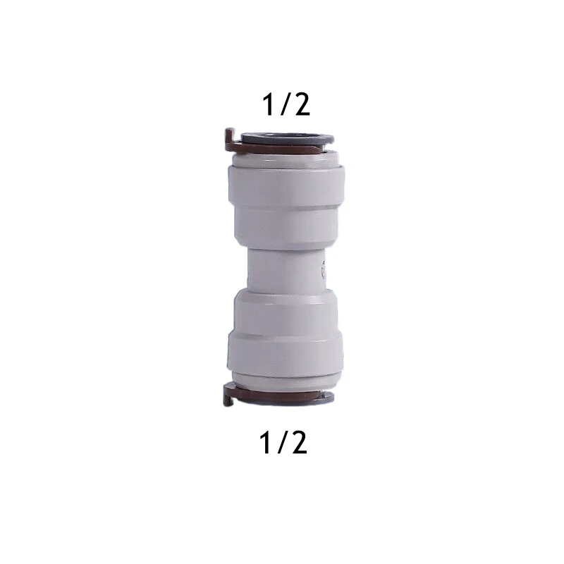 This durable POM plastic straight water fitting coupling features a 1/2 inch (12.7 mm) quick connector with a 12 mm inner diameter hose connection, designed for household water filtration and reverse osmosis systems. It operates within a temperature range of 5°C to 80°C and handles pressures of at least 850 kPa. The coupling features a male round head with an equal shape, forged using precision techniques, ensuring a secure, leak-proof connection for hoses and pipes. Its sleek, minimalist design emphasizes functionality, making it a reliable component for maintaining consistent water flow in your filtration system.