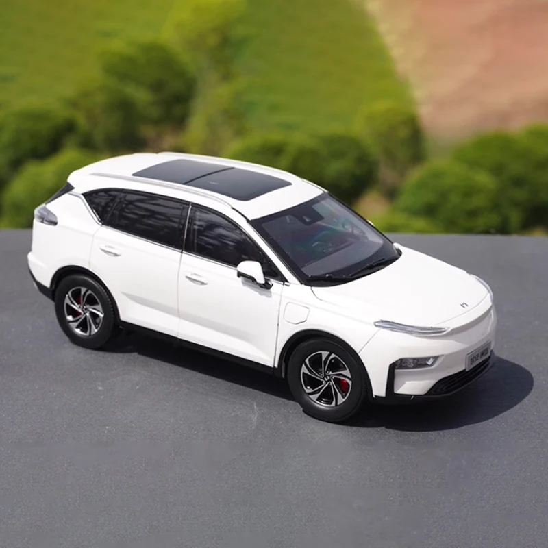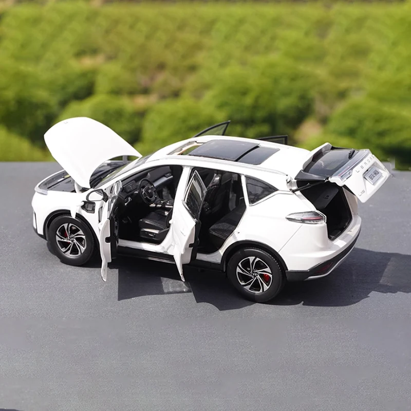 This highly detailed 1:18 scale diecast alloy model of the Leroro LX6 SUV measures approximately 25 x 11 centimeters, showcasing sleek, modern design elements including smooth flowing lines, a pristine white finish with black accents, and upscale black and silver alloy wheels. The model features precise details such as narrow, angular headlights, wrap-around taillights, flush door handles, tinted windows, and a black roof spoiler, reflecting the real vehicle’s contemporary, sporty aesthetic. Crafted from alloy for durability and realism, this finished static ornament is perfect for collectors seeking a high-end display piece that captures the elegance and sophistication of the Leroro LX6 SUV.