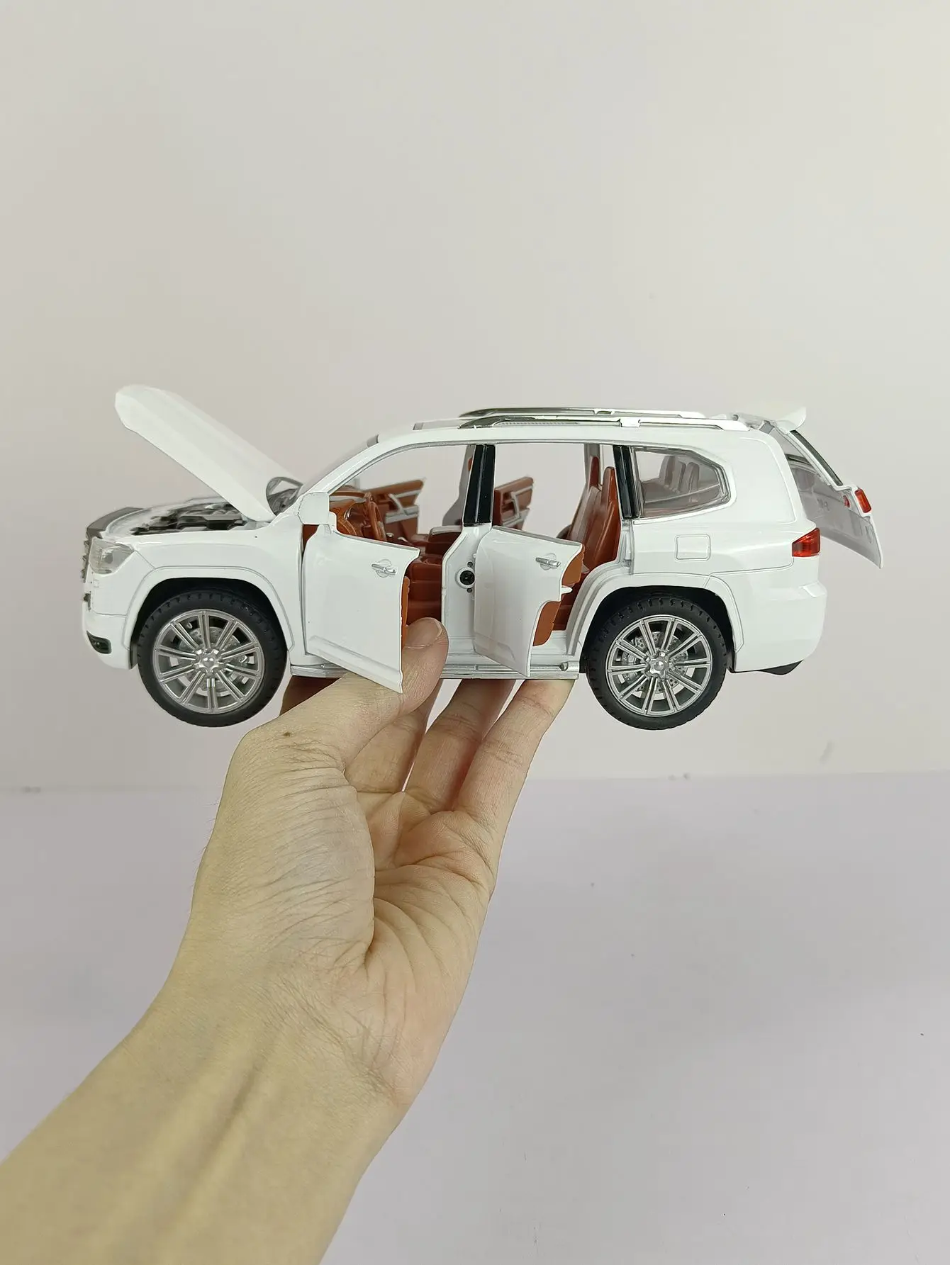 Experience the thrill of owning a meticulously crafted replica with this stunning white 1:24 scale diecast alloy off-road vehicle. Its sleek, modern design echoes the rugged appeal of real off-road cars, making it an impressive display piece or a fun toy. The detailed metal construction combined with functional features such as opening doors, hood, and trunk gives a realistic touch that appeals to collectors and enthusiasts alike. Designed with attention to detail, this model captures the essence of off-road adventure, from the textured tread tires to the intricate multi-spoke rims. Perfect for display or imaginative play, it brings the excitement of off-road driving into your collection.