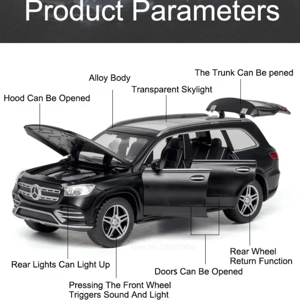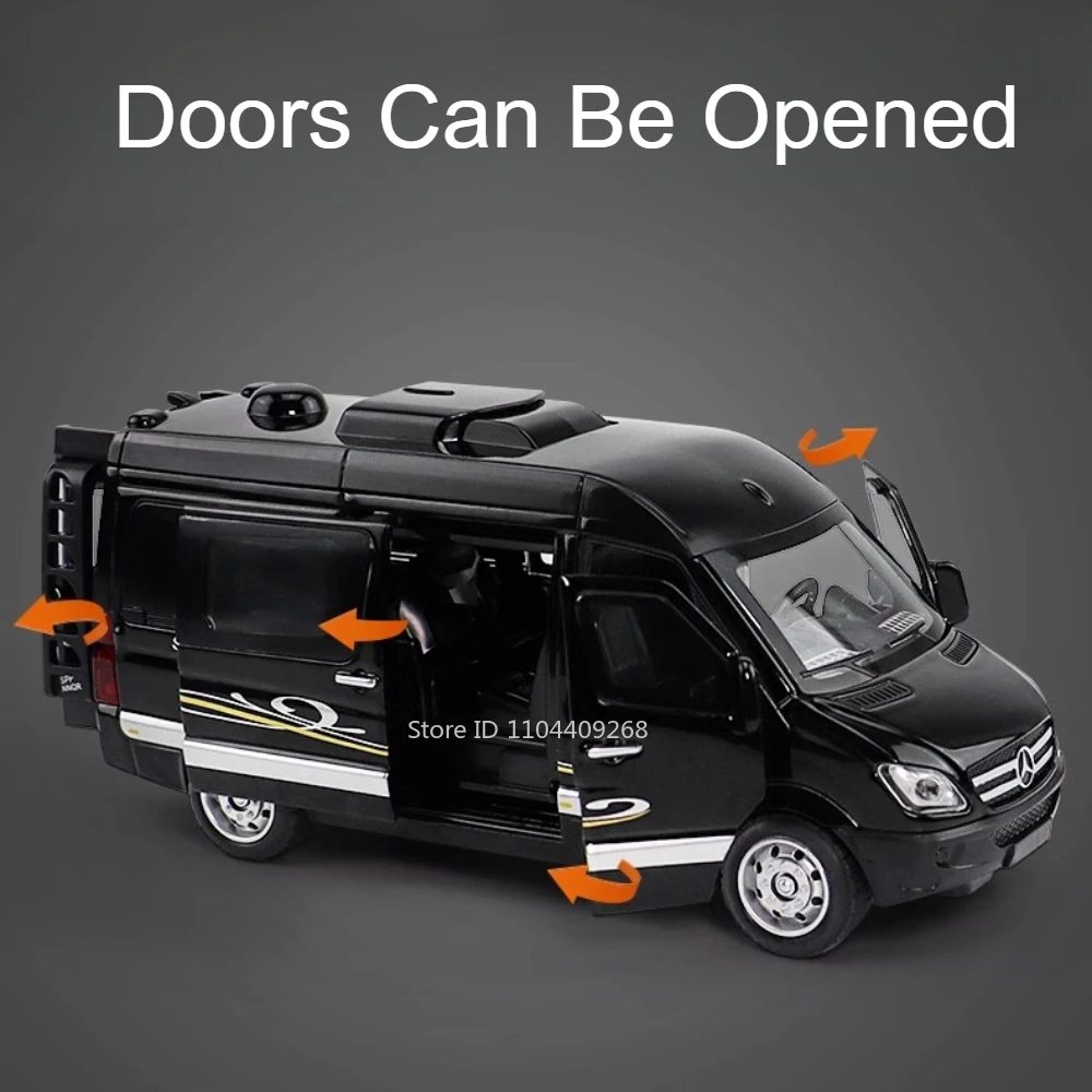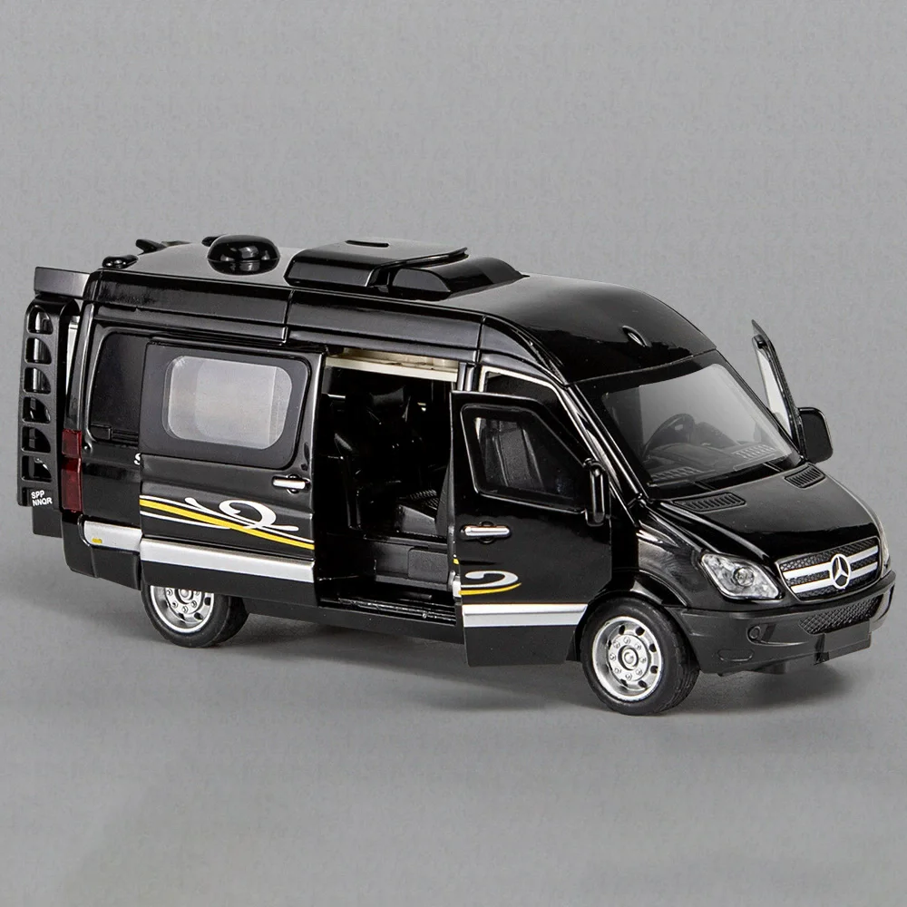 Experience owning a meticulously crafted 1:32 scale diecast Mercedes-Benz Sprinter GLS580 model that combines realistic design with functional features. This high-quality miniature captures every detail of the original, from its sleek, glossy white finish to its aerodynamic, streamlined shape. Its spacious high-top profile, large tinted windows, and authentic grille evoke the modern and professional aesthetic of real Mercedes vans. The model’s durable alloy body provides sturdy construction, while its plastic chassis and rubber tires ensure smooth handling and realism. With light and sound functions, opening doors, and pull-back mobility, this model offers delightful interaction. Perfect for collectors, fans, or desktop decoration, this model elevates the visual appeal of any space, enhancing your collection.