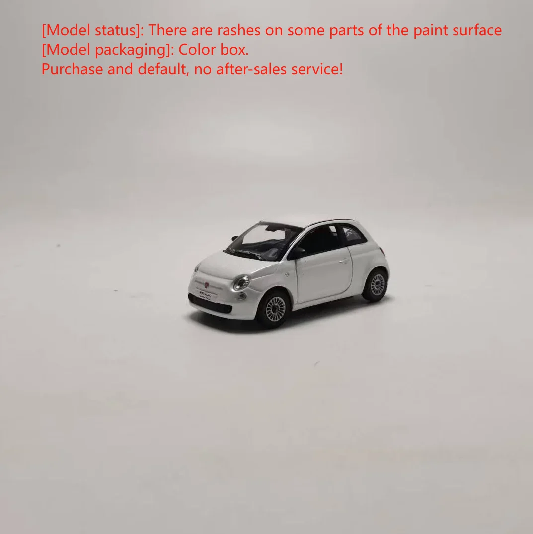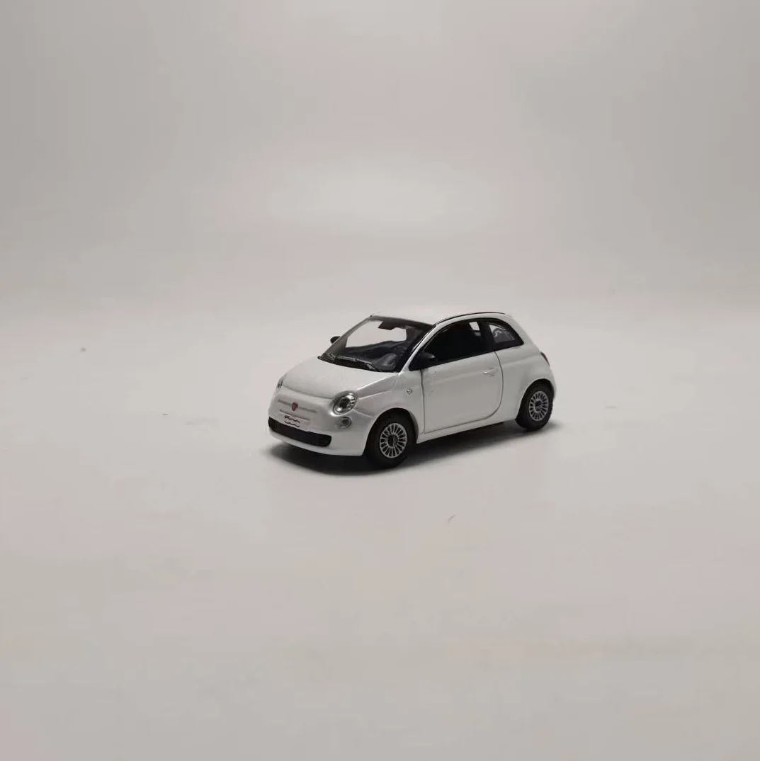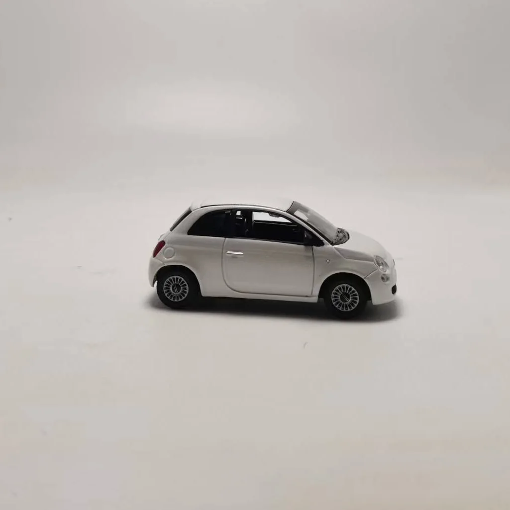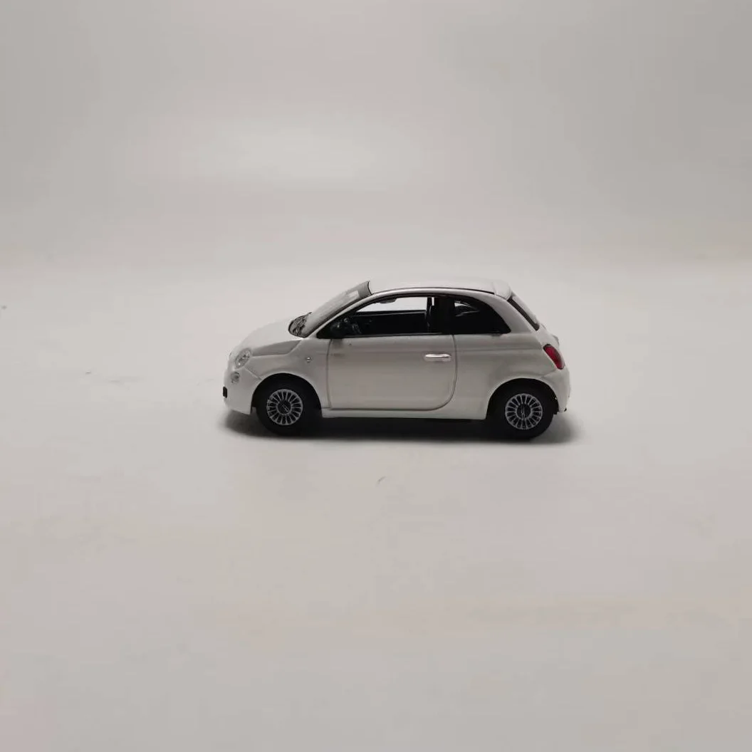 This 1:43 scale die-cast Fiat 500 model features a sleek white body with a contrasting black roof and stripe, detailed with round headlights, a small grille, and a subtle red emblem. Made from alloy, rubber, and plastic, it has rotatable wheels and refined exterior details such as side mirrors and door handles. Perfect for collectors, display, or as a gift, this static model emphasizes precise craftsmanship despite minor paint imperfections. Measuring proportionally to the original vehicle, it’s designed for ages 14 and up, with no electrical components or batteries, making it an ideal addition to any automotive or miniature collection.