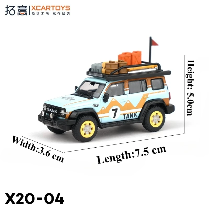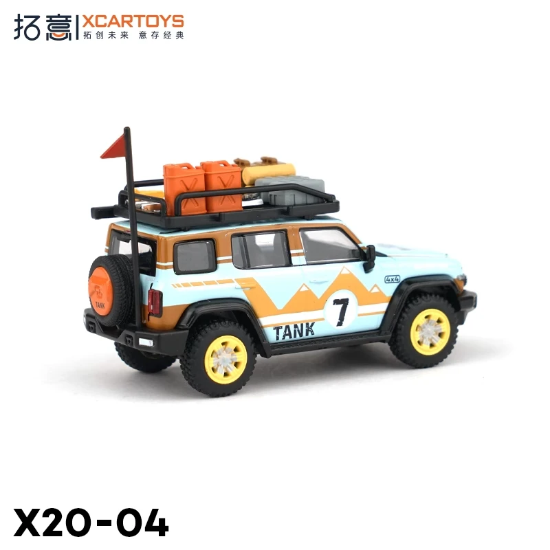 - Scaled at 1:64 with intricate detailing on the exterior, including decals like “TANK,” realistic wheels with bright yellow rims, and accessories on the roof for a lifelike appearance.