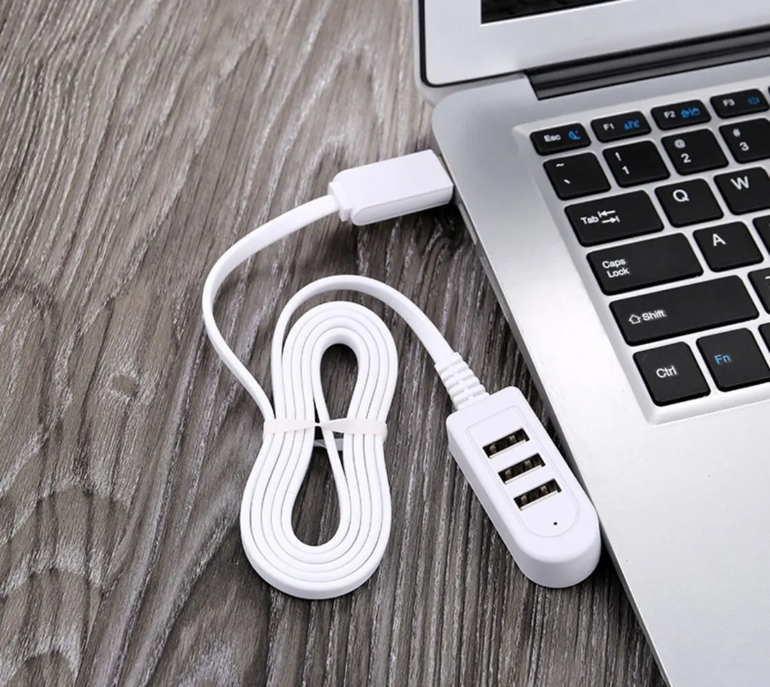 Enhance your connectivity with this sleek, white 3-port USB hub featuring a durable flat noodle cable available in 30 cm or 120 cm lengths. Constructed from TPE and copper, it offers robust durability, heat-resistant connectors, and a minimalist rectangular design with softly rounded edges. Supporting simultaneous charging and data transfer across three USB ports, it ensures fast data sync and device management. Weighing only 24 grams, this highly portable hub is perfect for on-the-go use, easily fitting into your pocket or bag. Its simple, sturdy build and unobtrusive aesthetic make it an ideal accessory for expanding your laptop’s capability both at home and on the move.