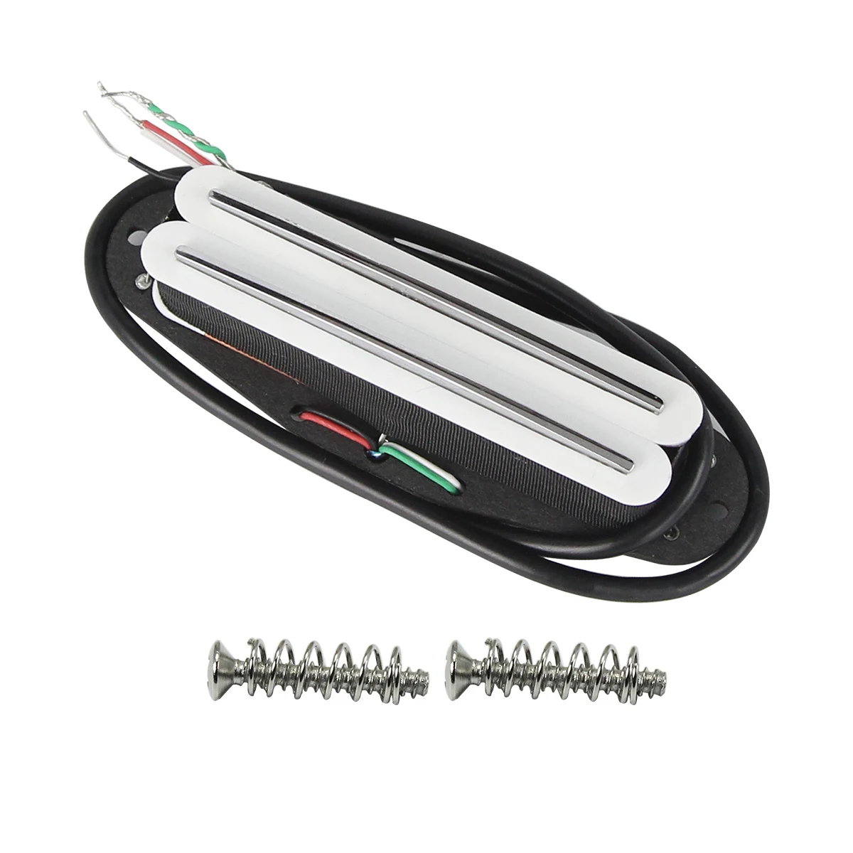 Experience the perfect blend of vintage charm and modern precision with this white Alnico 5 dual rails pickup, designed specifically for neck positions on classic and contemporary electric guitars. The sleek, rectangular shape with rounded edges offers a clean, minimalist aesthetic, making it an attractive addition to any guitar setup. Its crisp white finish contrasted by a black base plate emphasizes both style and functionality. The two elongated metal rails running horizontally across the pickup give it a technical, streamlined look. Fully wax potted and sealed, this pickup minimizes feedback and noise, ensuring pure sound quality. Its durable fiber plate flatwork bobbin enhances tone clarity, making it an ideal choice for guitar enthusiasts seeking refined sound and vintage-inspired aesthetics.