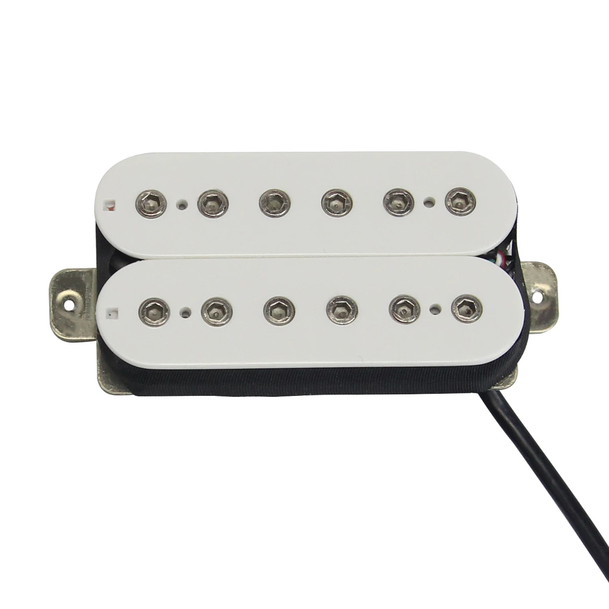 Experience the perfect blend of style and performance with this set of two white Alnico 5 humbucker pickups. Designed for both neck and bridge positions, they offer high output and clarity for your electric guitar. The sleek white finish and modern rectangular shape with rounded edges provide a professional, minimalist aesthetic that complements your instrument's look. Fully waxed and sealed, these pickups ensure durability and smooth performance. Each pickup features 12 adjustable hex pole pieces for precise tonal control, with a pole spacing of 50mm for neck and 52mm for bridge. With PVC wiring allowing four-to-single output switching, you can customize your sound effortlessly. Elevate your guitar's sound quality and visual appeal with these premium pickups.