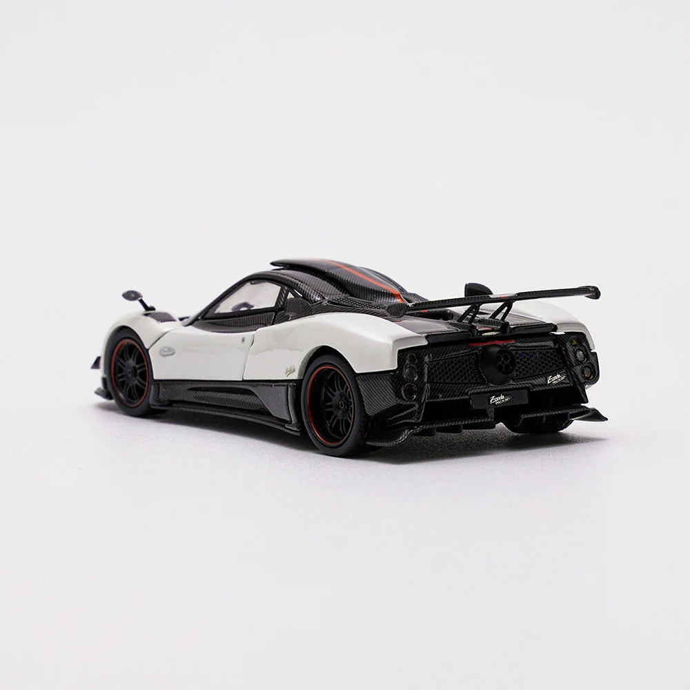 Experience the elegance and precision of this detailed die-cast 1:64 scale Zonda model, designed for collectors and enthusiasts. Crafted from alloy, rubber, and ABS, it captures the sporty silhouette of the Zonda perfectly. Its sleek white body is accentuated with black carbon fiber textures on the roof and rear section, adding a realistic touch. The aerodynamic profile features a sharp, flowing design, with a low stance and dynamic lines. The model’s miniature size makes it ideal for display in your collection, showcasing intricate detailing like textured vents, a rear wing, and alloy rims with red accents. The openable rear cover reveals interior details, emphasizing craftsmanship and high-quality finish. Perfect for display or as a thoughtful gift.