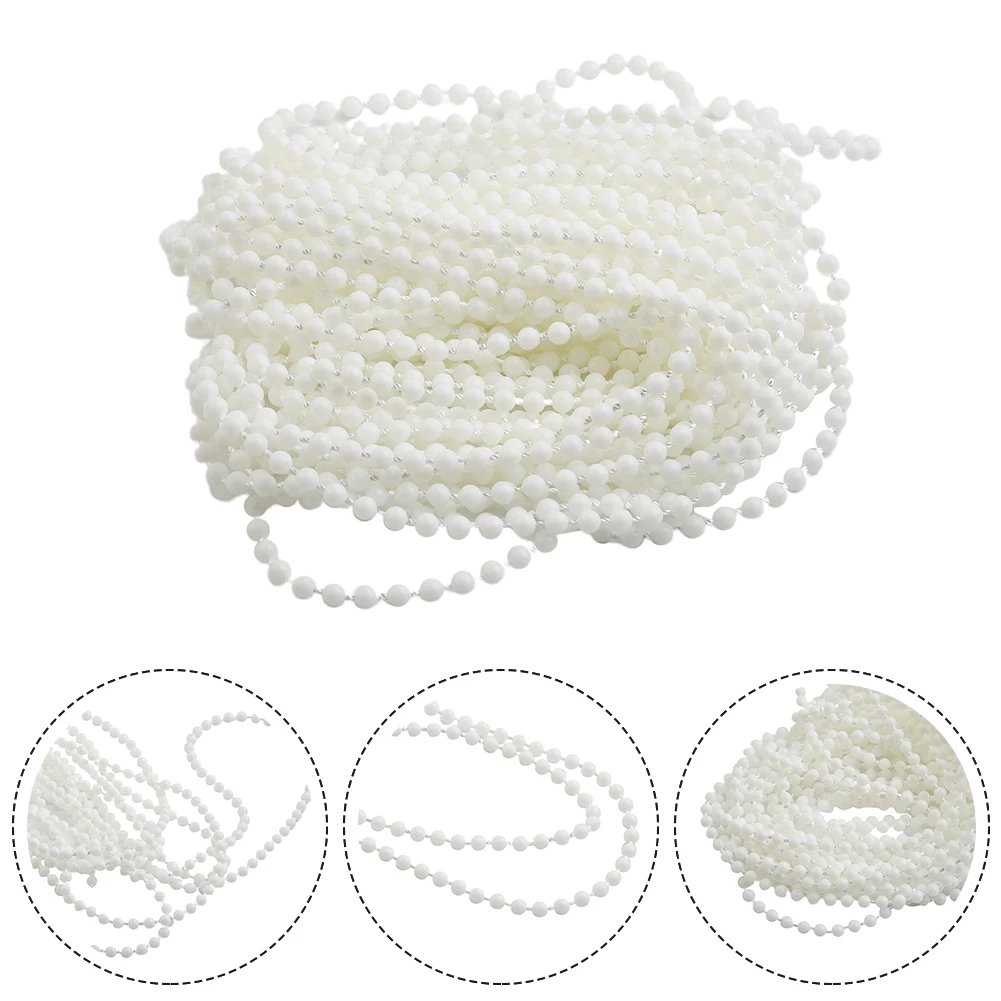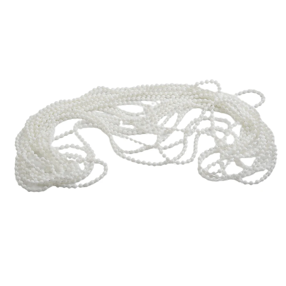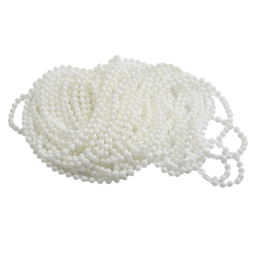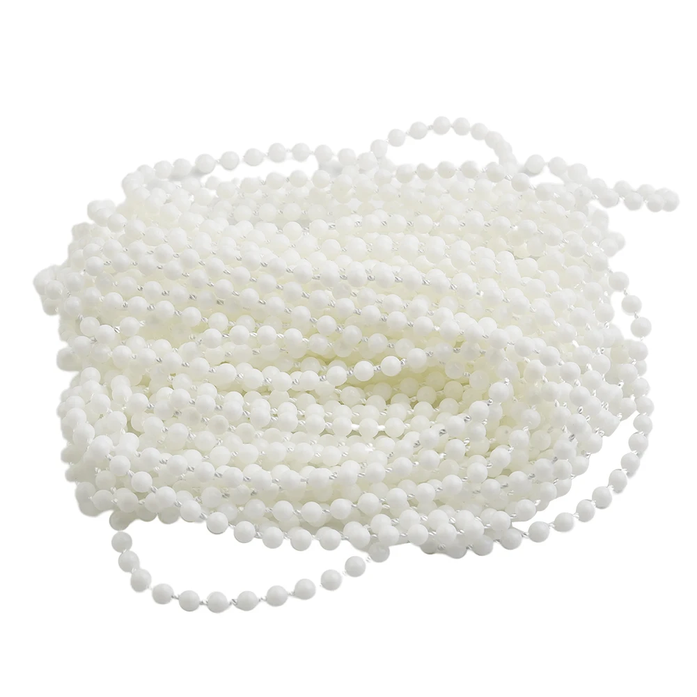 - Technical specifications: Chain length of 10 meters (393.7″); Bead size: small, round, glossy, uniform; Connector dimensions: approximately 17x7mm (0.7×0.3″); Material: durable plastic.