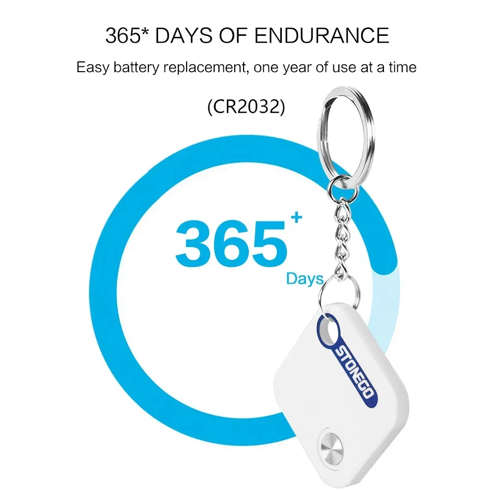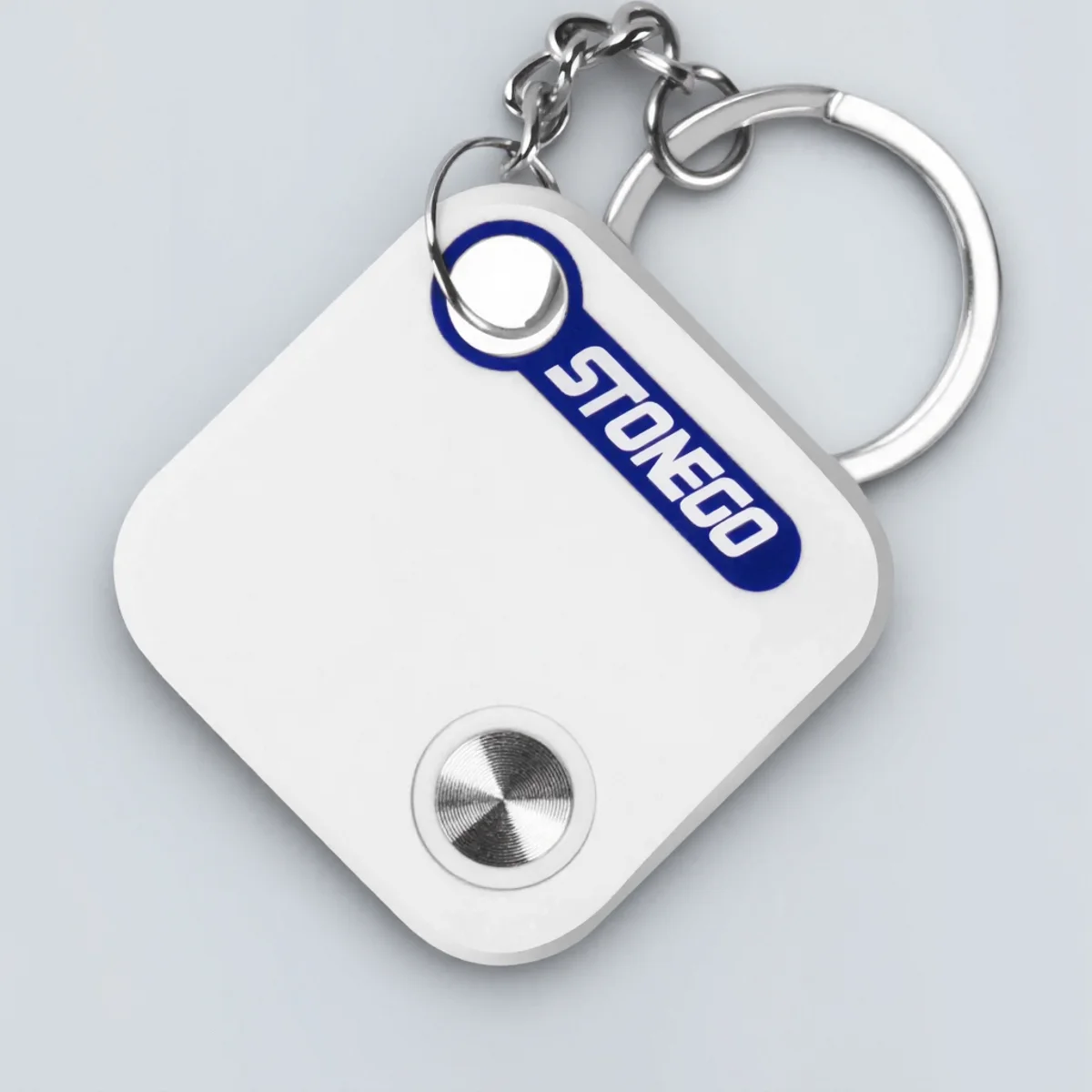 Imagine never losing your important belongings again with this sleek, white Bluetooth GPS tracker. Designed for everyday convenience, its compact size—measuring just 37.8mm by 37.8mm with a slim 6.3mm thickness—fits effortlessly onto keys, bags, or pets. Crafted from durable ABS with an elegant matte finish, it combines style and practicality. Its minimalist square shape is complemented by a metallic circular button, adding a touch of sophistication. The bold blue “STONEGO” logo contrasts sharply against the clean white surface, making it sleek yet noticeable. With an IP67 waterproof rating, this tracker withstands splashes, rain, and brief submersion. Lightweight at only 9.5 grams, it slips comfortably into your everyday routine. This smart device seamlessly links with your Apple ecosystem, giving you peace of mind wherever you go.
