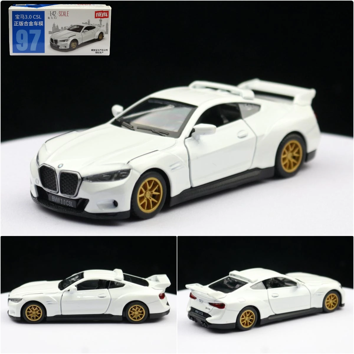 Capture the essence of racing heritage with this 1/42 scale diecast metal model of the iconic BMW 3.0 CSL. Finished in a sleek, glossy white, this highly detailed collectible features an aerodynamic design with sculpted body lines, a prominent rear spoiler, signature kidney grille, narrow headlight details, and gold-colored multi-spoke wheels with low-profile tires. Equipped with openable doors that reveal intricate interior details, this sturdy model requires no batteries or electricity and is suitable for collectors aged 14 and above. Perfect for display, it embodies sporty modernity and classic racing sophistication, making it an essential addition to any enthusiast’s collection.