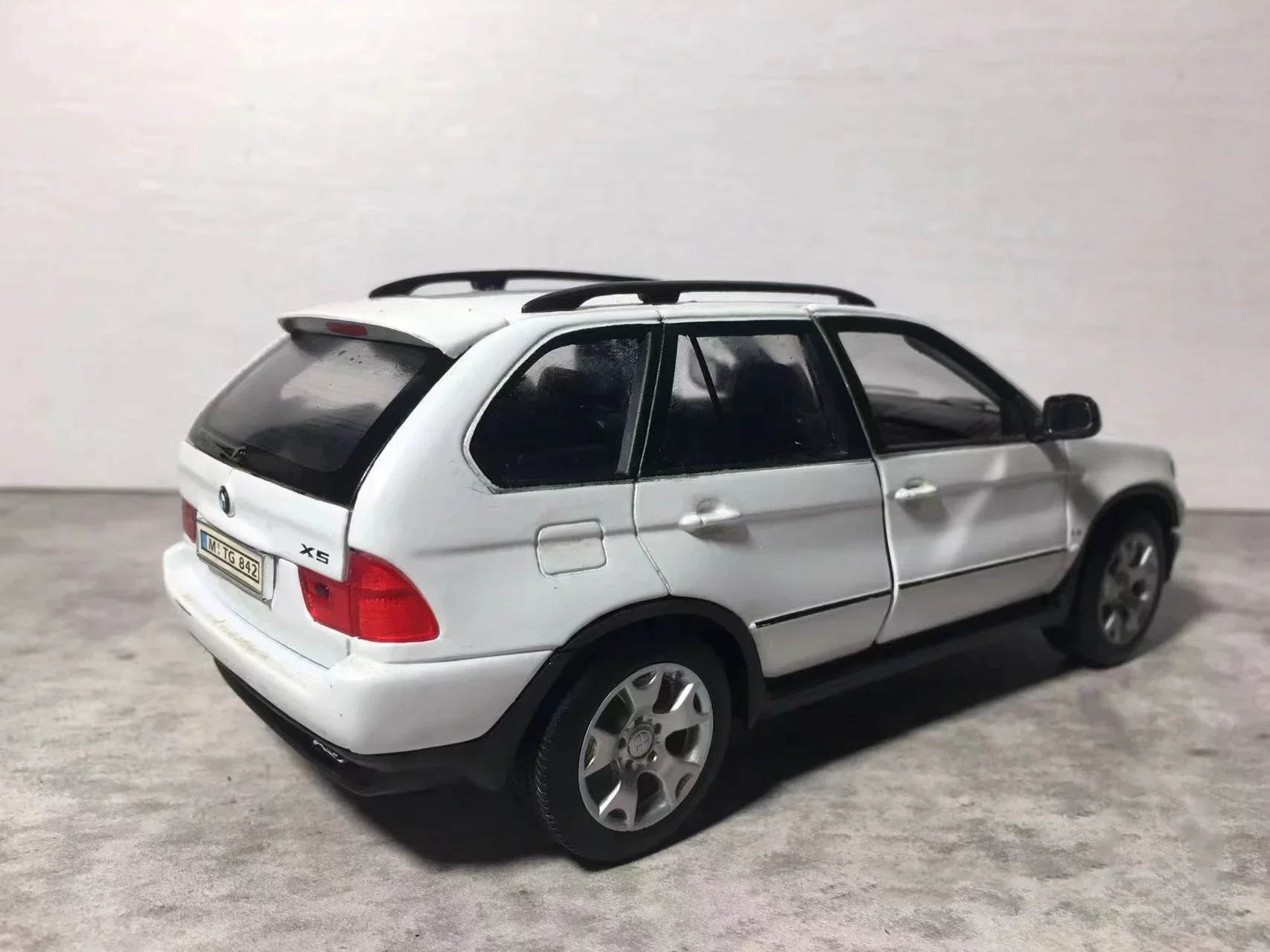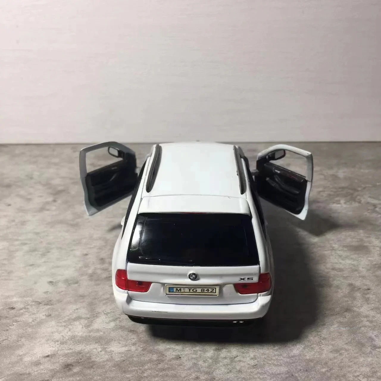 Immerse yourself in the sophisticated appeal of this detailed BMW X5 die-cast alloy model. Crafted with meticulous precision, it boasts a crisp white finish that accentuates the sleek curves and signature kidney grille of this luxury SUV. The model captures realistic proportions with sculpted body lines, all-metal alloy construction, and finely styled wheels with multiple spokes. Translucent windows add elegance, making it a perfect display piece or collectible for adult car enthusiasts. Note that minor imperfections like rash or slight paint drops exist but do not diminish its aesthetic or value as a static decorative item. Own this striking replica to elevate your collection or gift with confidence.