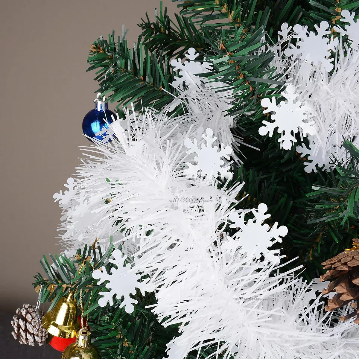 - Decorated with small, intricate white snowflake embellishments interwoven throughout, adding delicate, elegant details to your Christmas decorating scheme.