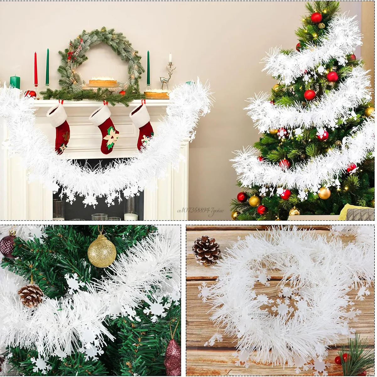 - This 2-meter white snowflake garland has a fluffy, feathery texture resembling snow or frost, enhancing the wintery, festive atmosphere of your holiday decor.