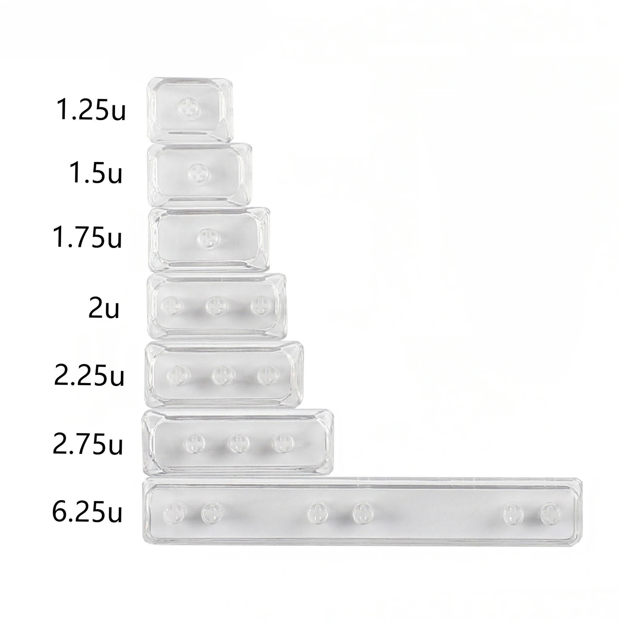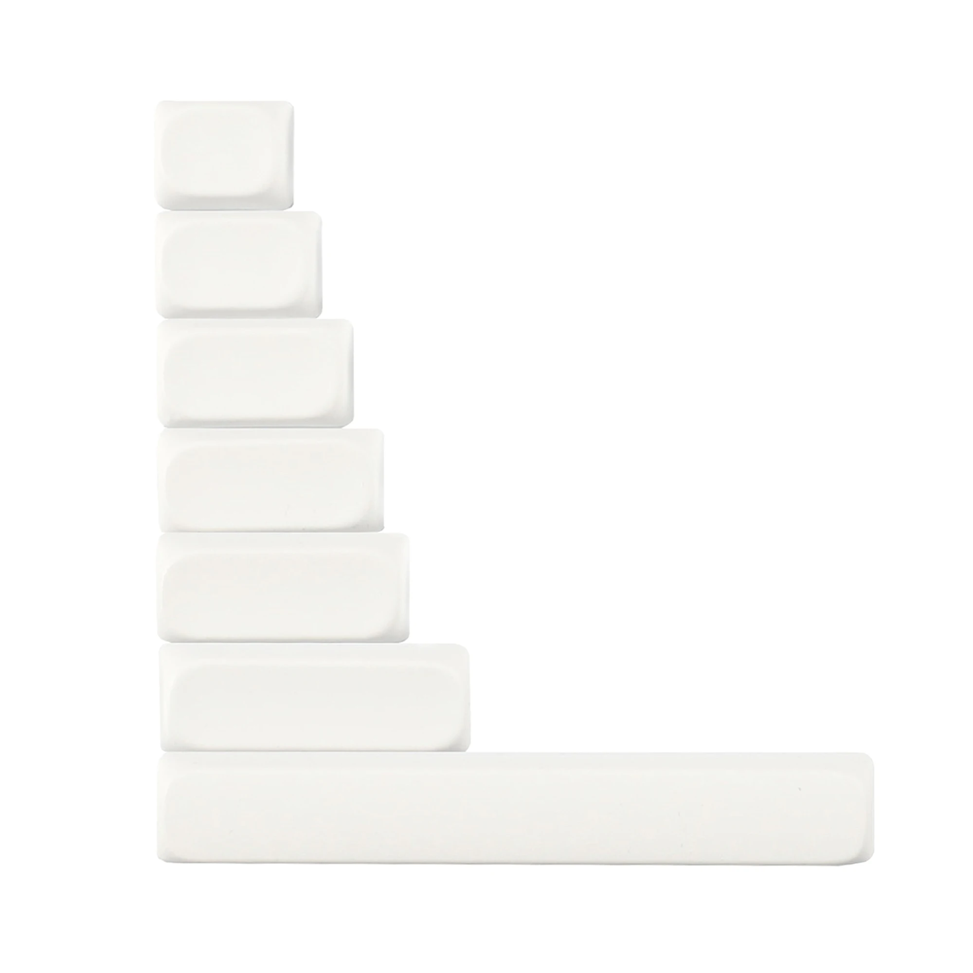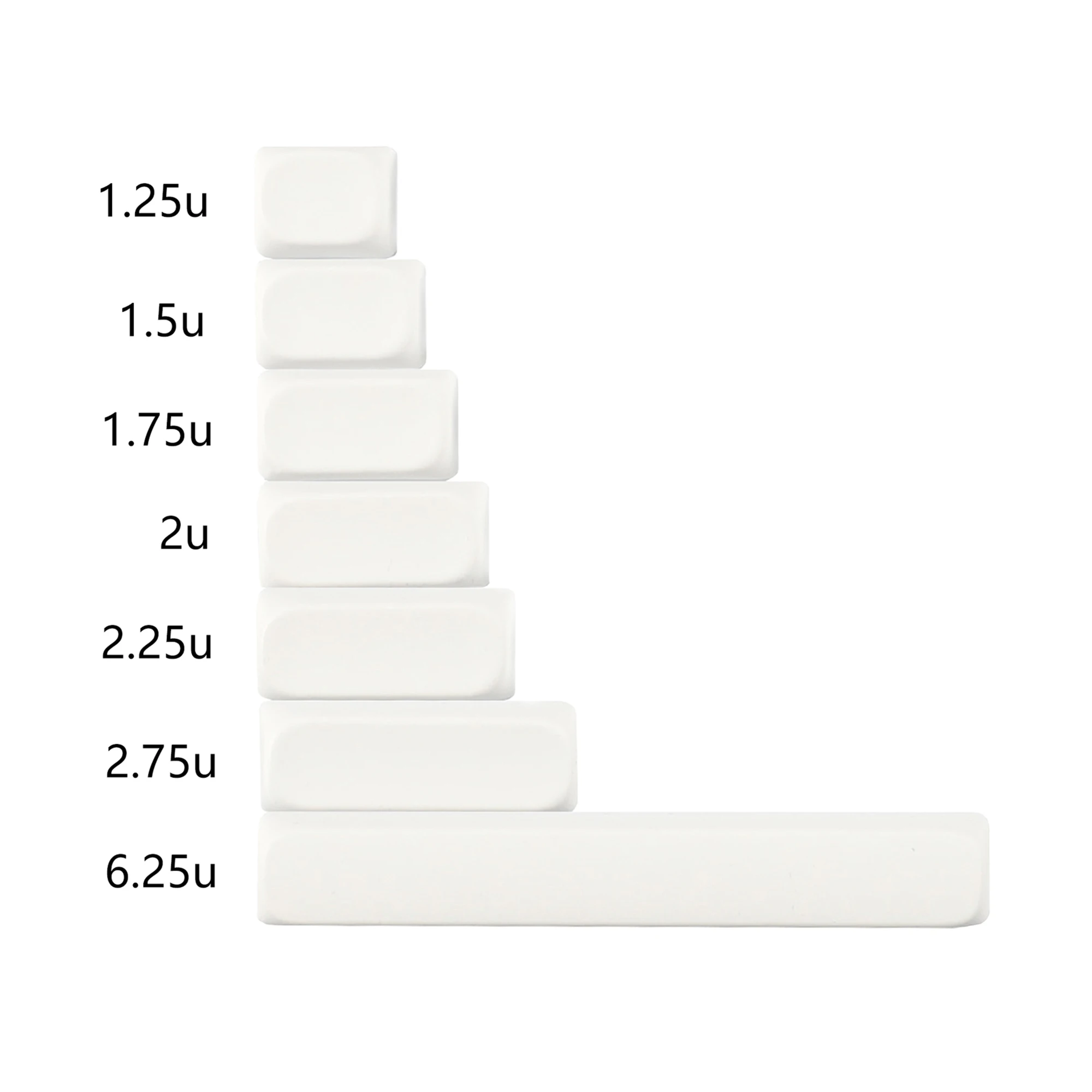 Enhance your mechanical keyboard with these 100-piece MOA profile keycaps in white and clear, crafted from durable, wear-resistant PBT for opaque keys and PC for transparent keys with high light transmittance. Available in sizes 1.25u, 1.5u, 1.75u, 2u, 2.25u, 2.75u, and 6.25u, they feature a rounded edge for a precise, comfortable fit. Compatible with all MX switch mechanical keyboards matching these sizes, these keycaps suit desktop, laptop, and tablet setups. Their sleek, minimalist design allows your RGB or backlit keyboard to shine through, transforming your typing experience with clarity and style.